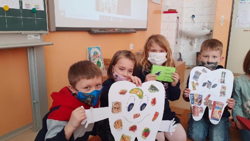 V rámci prvouky zhlédli žáci prvních tříd zábavně vzdělávací film Jak se dostat Hurvínkovi na zoubek. Jak si zuby správně čistit, proč je nutné chodit na preventivní prohlídky k zubnímu lékaři a co všechno je třeba dělat pro zdraví a správný růst zoubků, to jsou otázky, které dětem zábavnou a nenásilnou formou zodpověděli hlavní hrdinové loutkového příběhu – Hurvínek a Mánička.