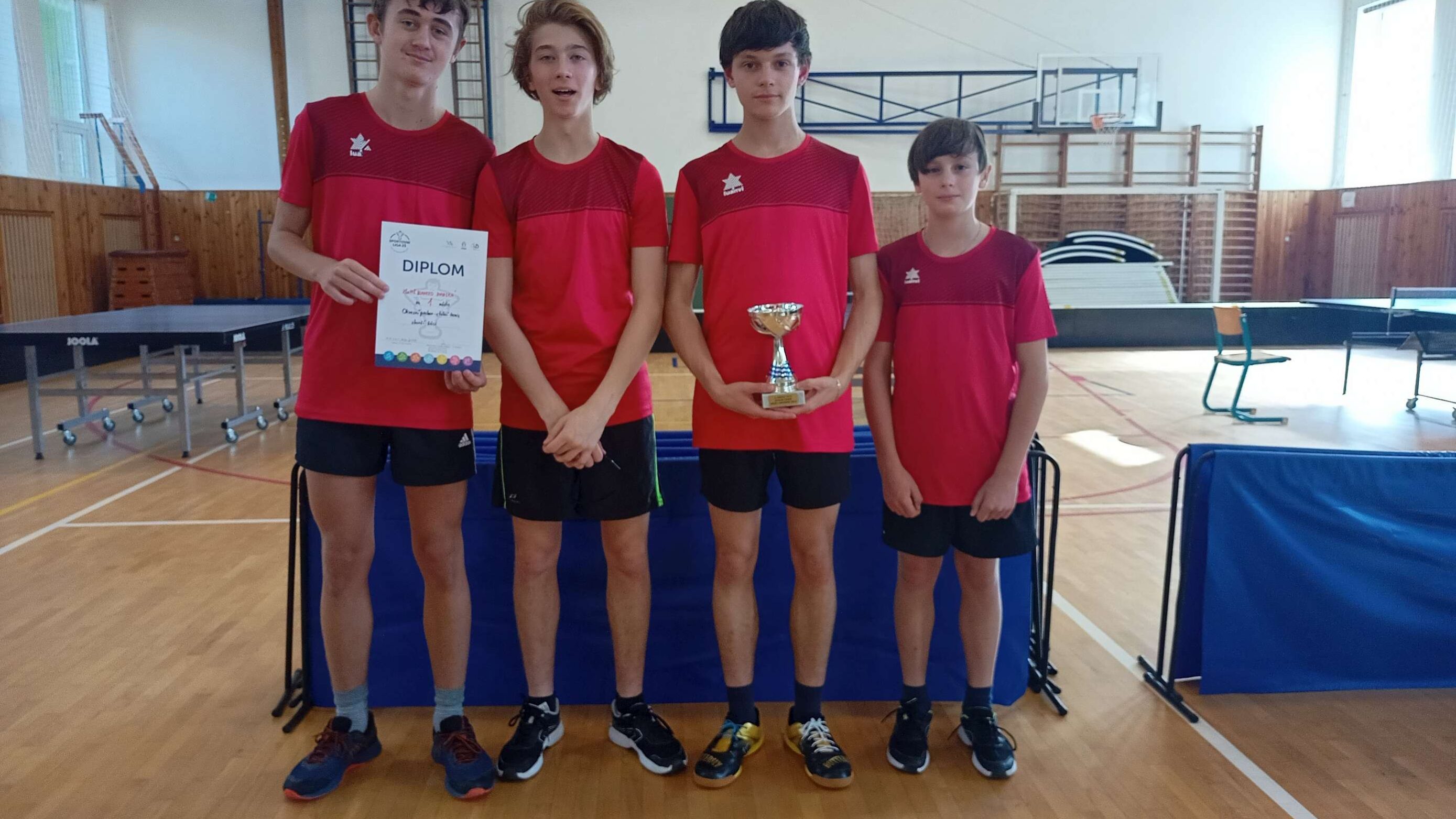 Ve čtvrtek 14. 10. se konalo na základní škole v Rájci-Jestřebí okresní finále ve stolním tenisu. Naši žáci (jmenovitě: Vojta Přikryl, Lukáš Přikryl, Zdeněk Schön, Adam Pernica) zaznamenali skvělý výsledek v podobě vítězství v kategorii starších chlapců, které jim zajistilo postup do finále Jihomoravského kraje. Stalo se tak vůbec poprvé v historii naší školy. Krajský turnaj se bude konat 2. 11. v Hodoníně. Hoši, gratulujeme a děkujeme😊