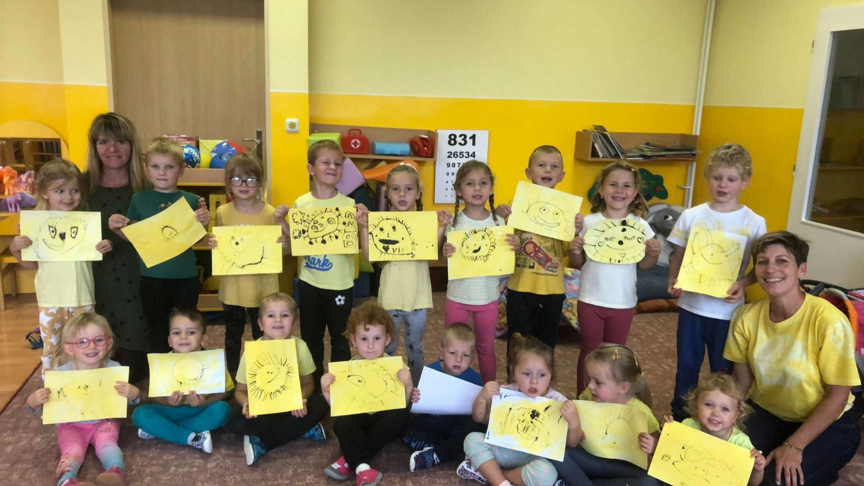 Zář142022Aktuality MŠ S dětmi jsme si povídali o tom, co vše může být žluté. Motýlci vyráběli hrušku a děti ze třídy sluníček malovaly sluníčka 🙂