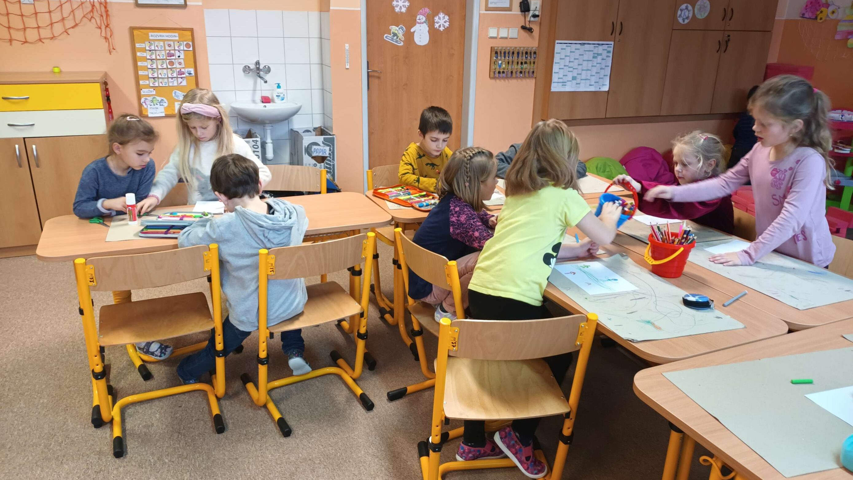 V první polovině ledna nám počasí dlouho očekávanou zimu nepřineslo. Často pršelo, a tak jsme se věnovali výtvarným činnostem.