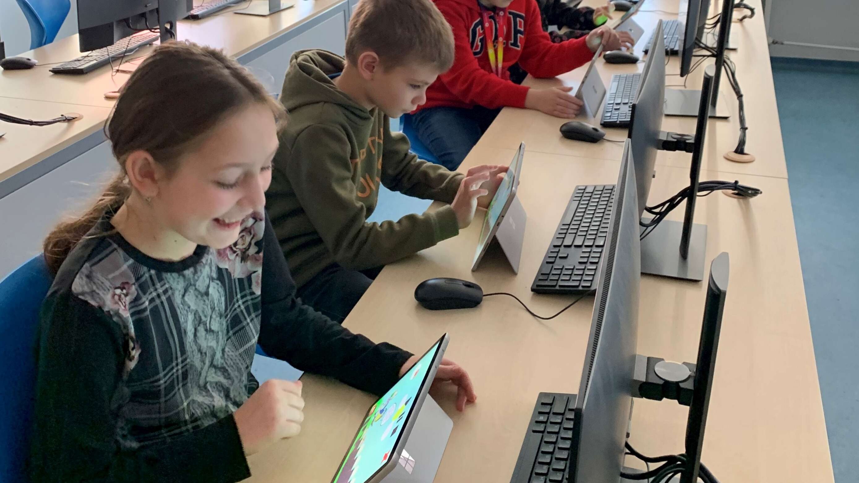 Tento soubor moderních zařízení nedávno rozšířilo dotykové zařízení Microsoft Surface, s nímž se jako první seznámili žáci pátých ročníků.