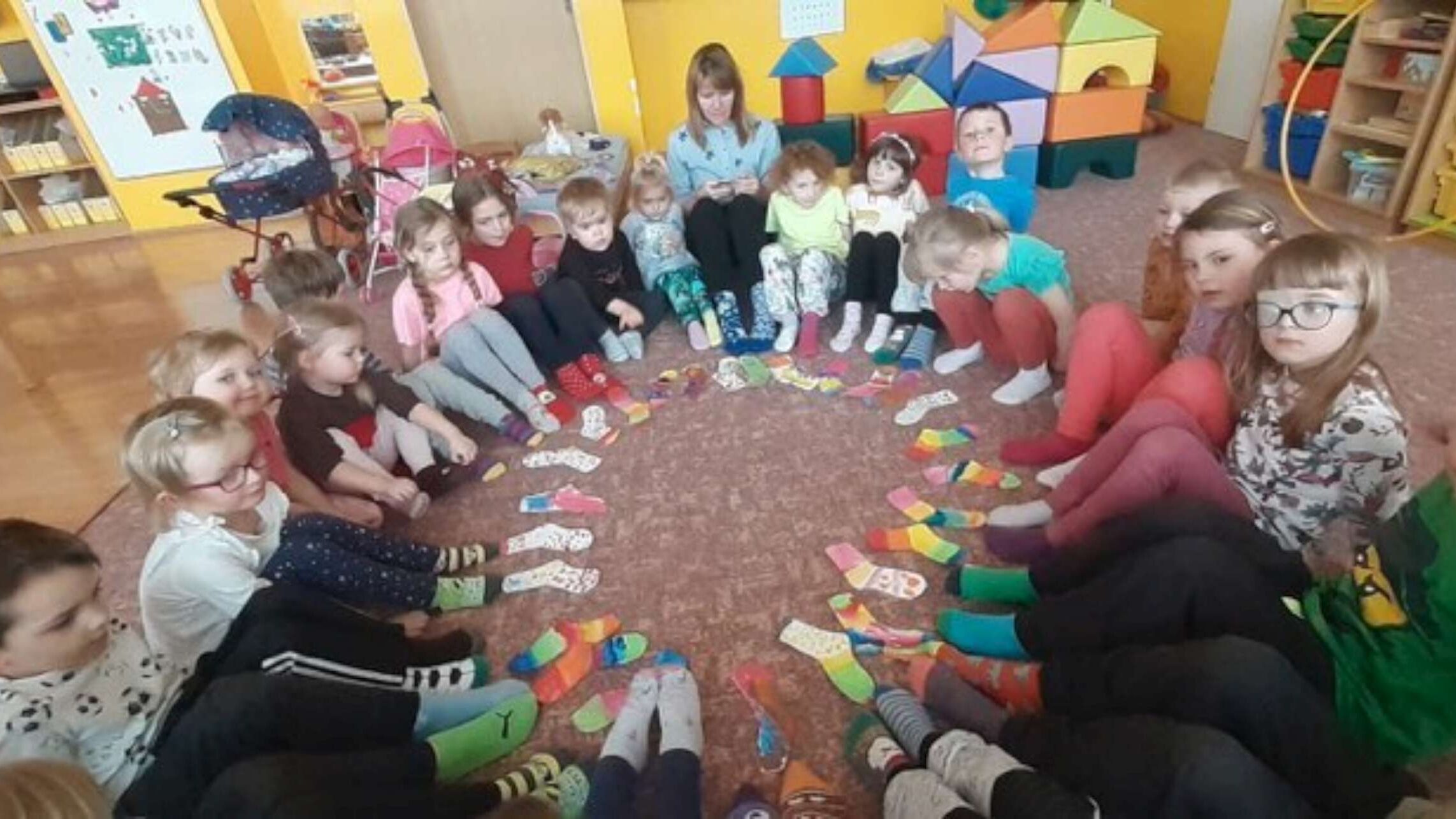 Bře212023Aktuality MŠ 21. 3. je Světovým dnem Downova syndromu. S dětmi jsme si povídali, co to je Downův syndrom, a potom děti ponožky výtvarně ztvárnily a zasoutěžily si ve věšení ponožek.