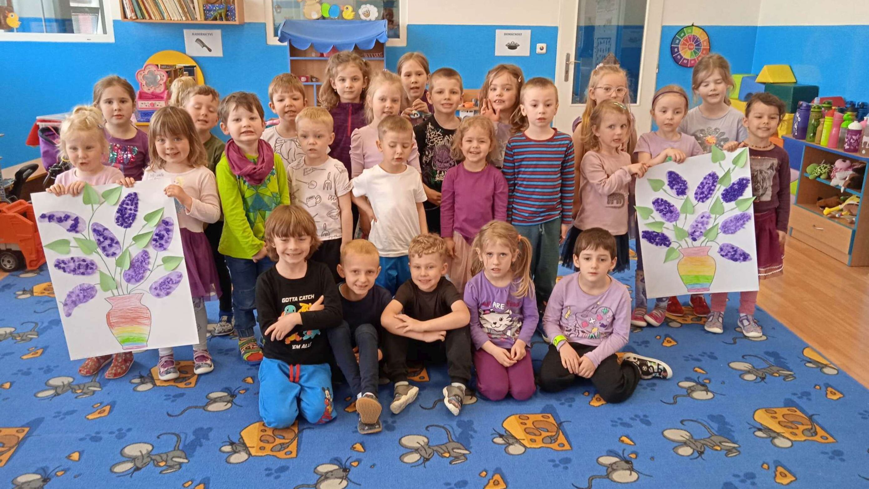 Děti hledaly, co vše je fialové, a společně tvořily šeřík.