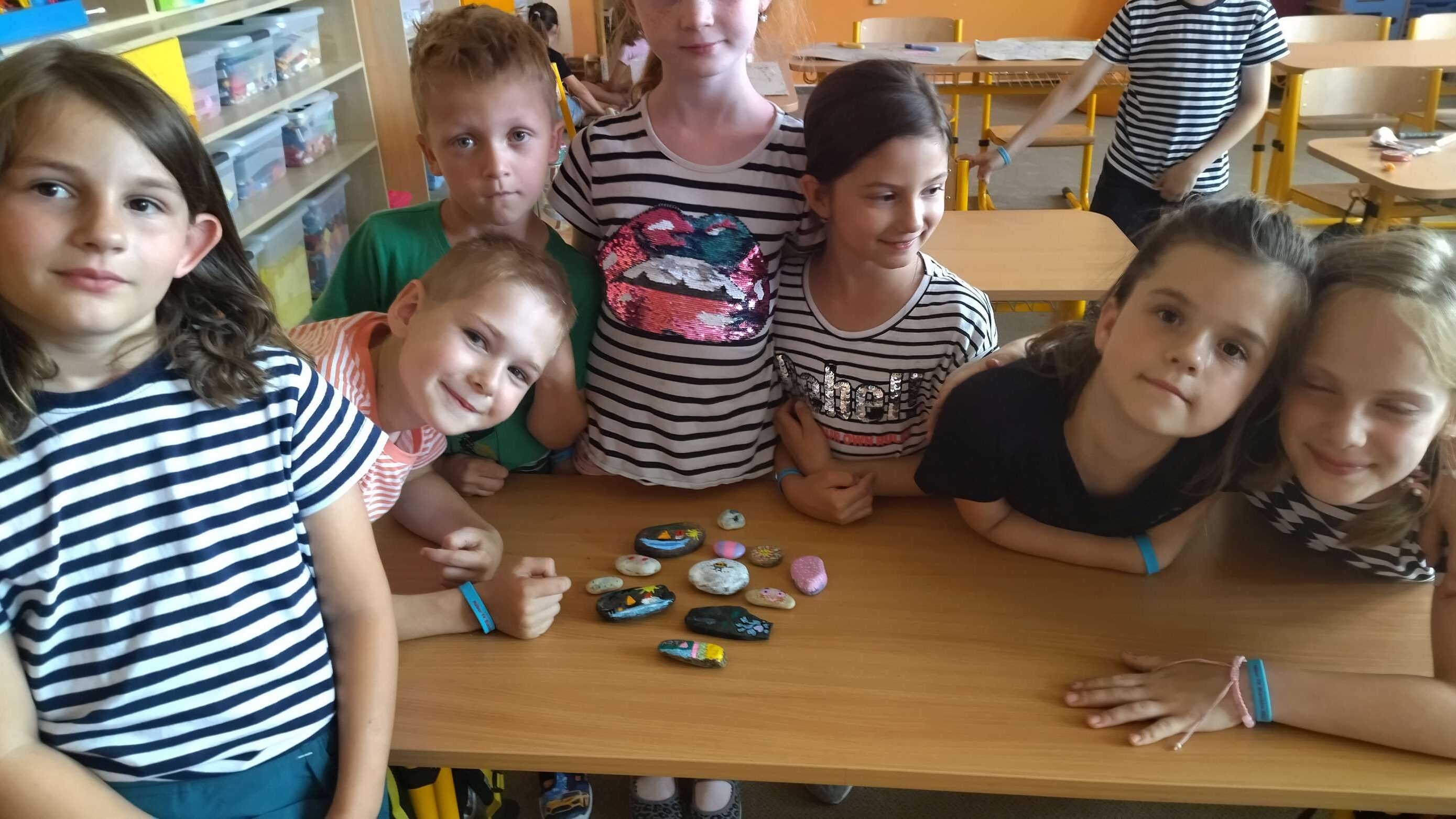 V červnu jsme si užívali letního počasí při vycházkách do okolí školy, kde jsme schovávali malované kamínky. Na školním hřišti jsme hráli hlavně míčové hry a nezapomněli jsme na bezpečnost při jízdě na kole, kterou jsme zdokonalovali na dopravním hřišti.