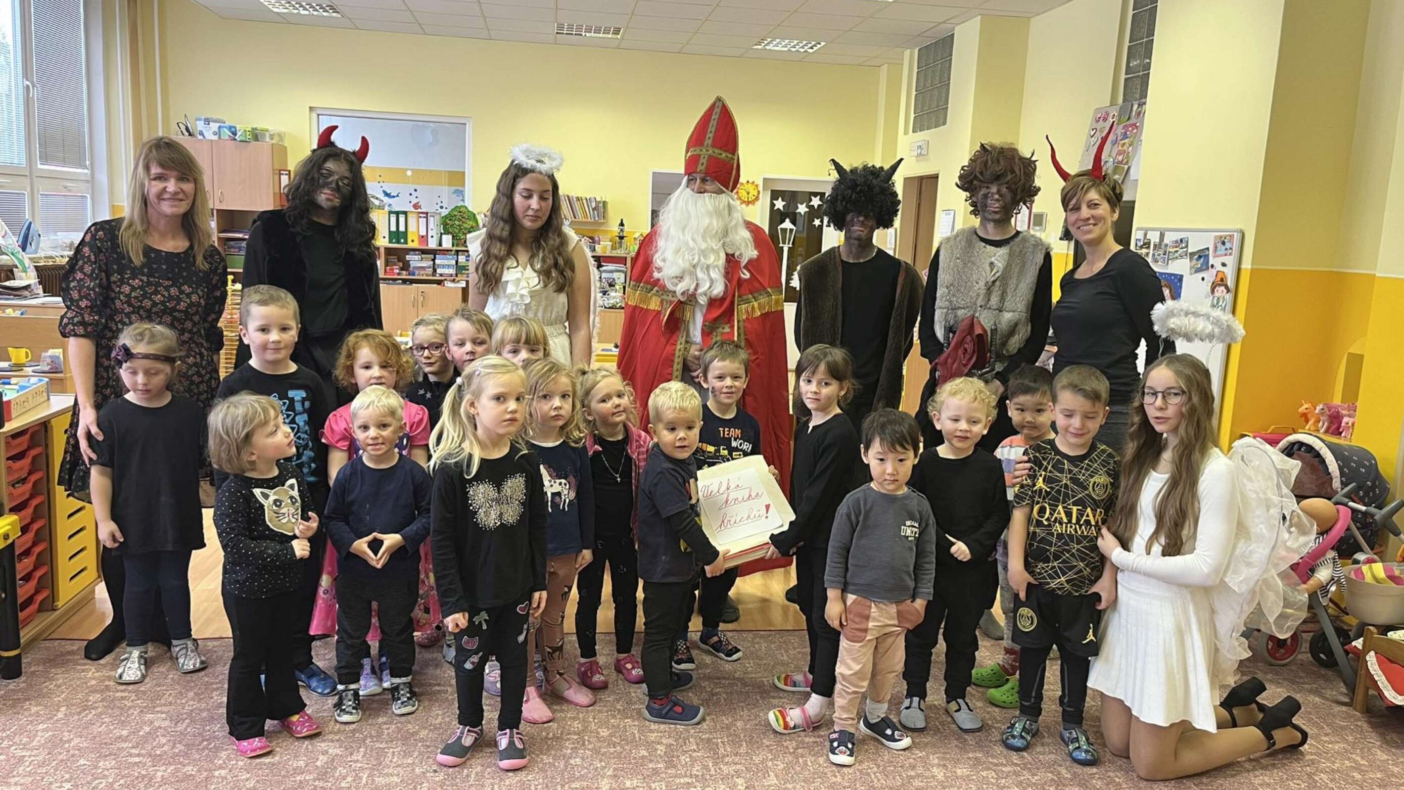 V úterý 5. 12. 2023 navštívil naši MŠ Mikuláš s jeho družinou. Děti společně zazpívaly písničky a odrecitovaly básničky, poté byly obdarovány sladkou odměnou. V rámci Černého dne děti ve třídě Sluníček vytvořily noční zasněžené městečko a ve třídě Motýlků kreslily děti uhlem pekelné čerty.