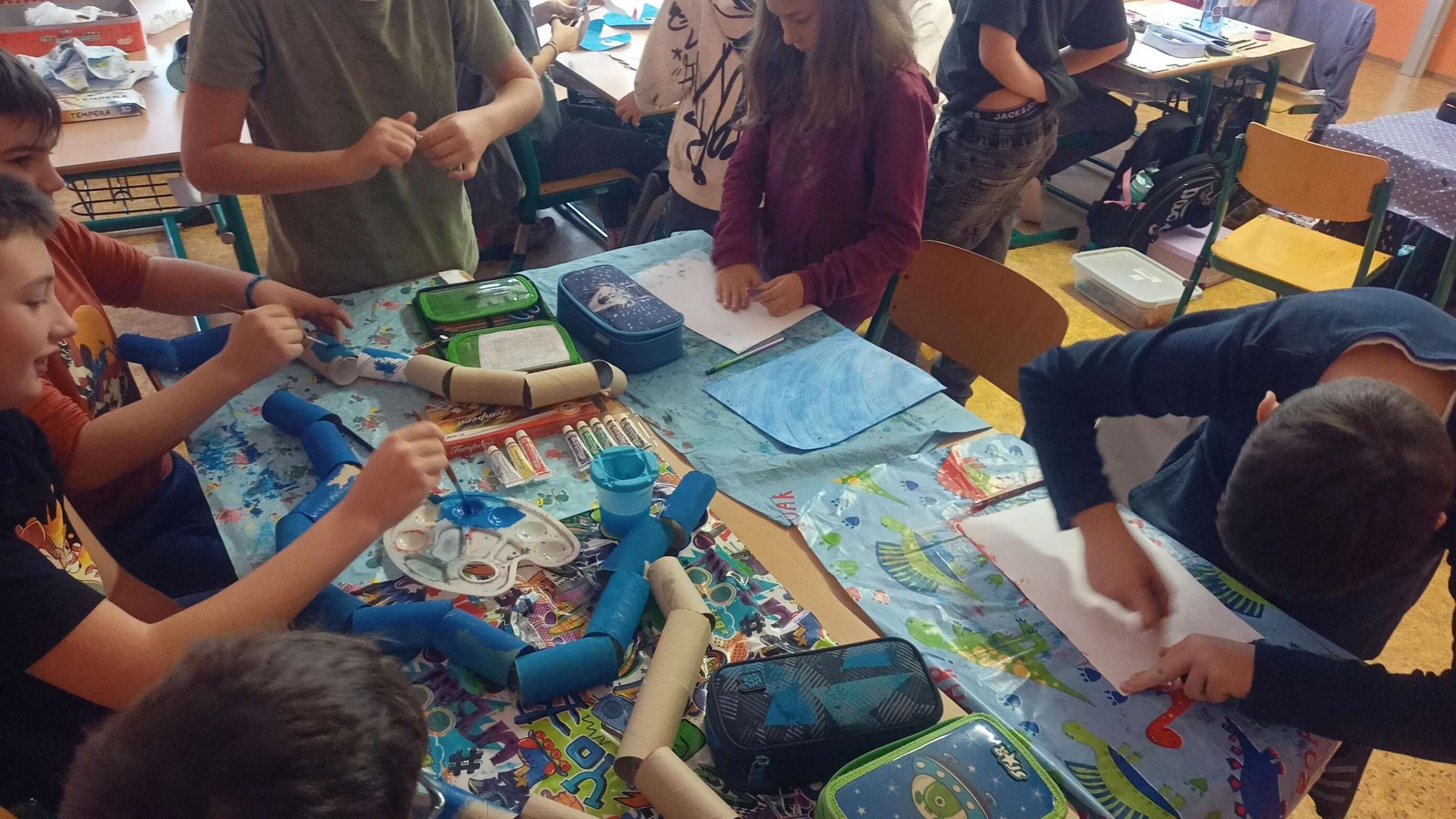 Naším cílem nebylo jen vytvořit krásné výtvarné dílo, ale také rozvíjet dovednosti, které děti využijí i mimo školu. Rozdělení práce ve skupinách pomáhá dětem pochopit, jak si efektivně rozdělit úkoly, respektovat názory ostatních a přispívat svým dílem k většímu celku. Když děti musí spolupracovat s ostatními skupinami, učí se, jak překonávat rozdílné pohledy a sladit je do harmonického výsledku.