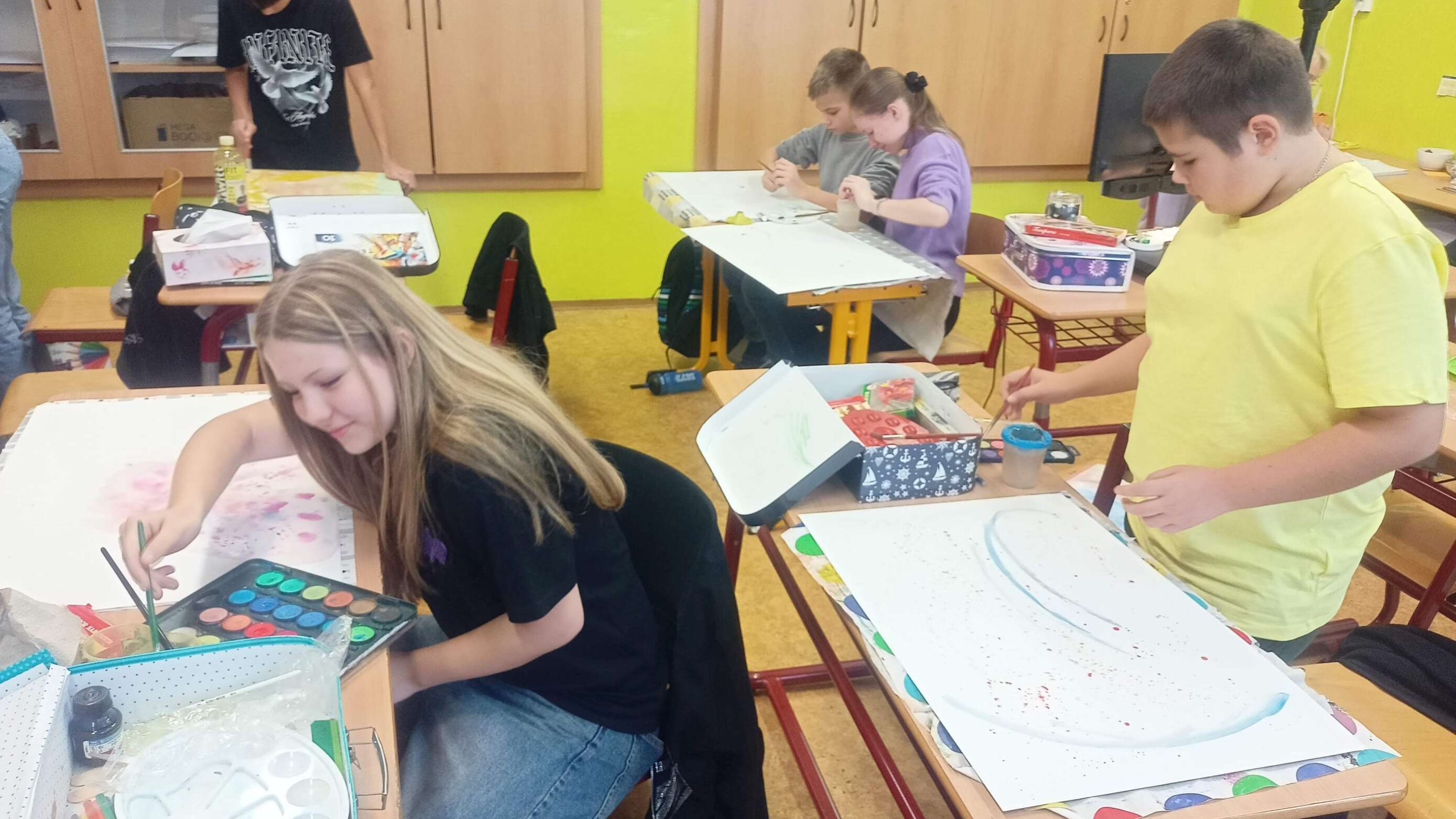 V hodinách výtvarné výchovy zažili žáci sedmého ročníku netradiční umělecký zážitek. Věnovali se tzv. akční malbě, která v sobě spojuje svobodu projevu, pohyb a hudbu. Tato technika, inspirovaná uměleckým směrem abstraktního expresionismu, přináší do výuky nejen radost z tvoření, ale i nové způsoby, jak rozvíjet kreativní myšlení.