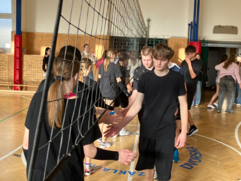 DDD – Dvougenerační Derby Dvorské je školní akce, kdy se žáci a učitelé potkávají na rozličných sportovních kláních. Po mnoho let se tradičně koná Vánoční volejbalový turnaj, kde na jedné straně palubovky stojí družstvo žáků, na druhé družstvo učitelů (tentokrát – p. uč. Ježek, Grmela, Grolich, Šejnoha a pan školník). Tentokrát deváťáci vytvořili družstvo chlapců a družstvo dívek. Školní tělocvična se po desáté hodině naplnila a nic nebránilo tomu, aby volejbalové klání započalo. Nejdříve své „síly“ s pedagogickým sborem porovnalo družstvo dívek (doplněné o „nahrávačku“ – pana učitele Weinhöfera). Poctivá příprava dívek slavila nakonec úspěch, v rozhodujícím setu dokázalo toto družstvo porazit své mentory (nutno dodat, že učitelé se teprve zahřívali „-). Následovalo družstvo chlapců, kteří tvrdým podáním nešetřili své učitele. Zaplněná tělocvična vytvořila perfektní a energizující atmosféru, která motivovala hráče k úžasným výkonům. Nakonec přeci jen zkušenosti na straně pedagogů slavily úspěch. Jak už to ale u našeho DDD bývá – nikdo neodešel poražený!!! Pobavené publikum, krásné volejbalové akce a strhující atmosféra – krásné zakončení kalendářního roku!