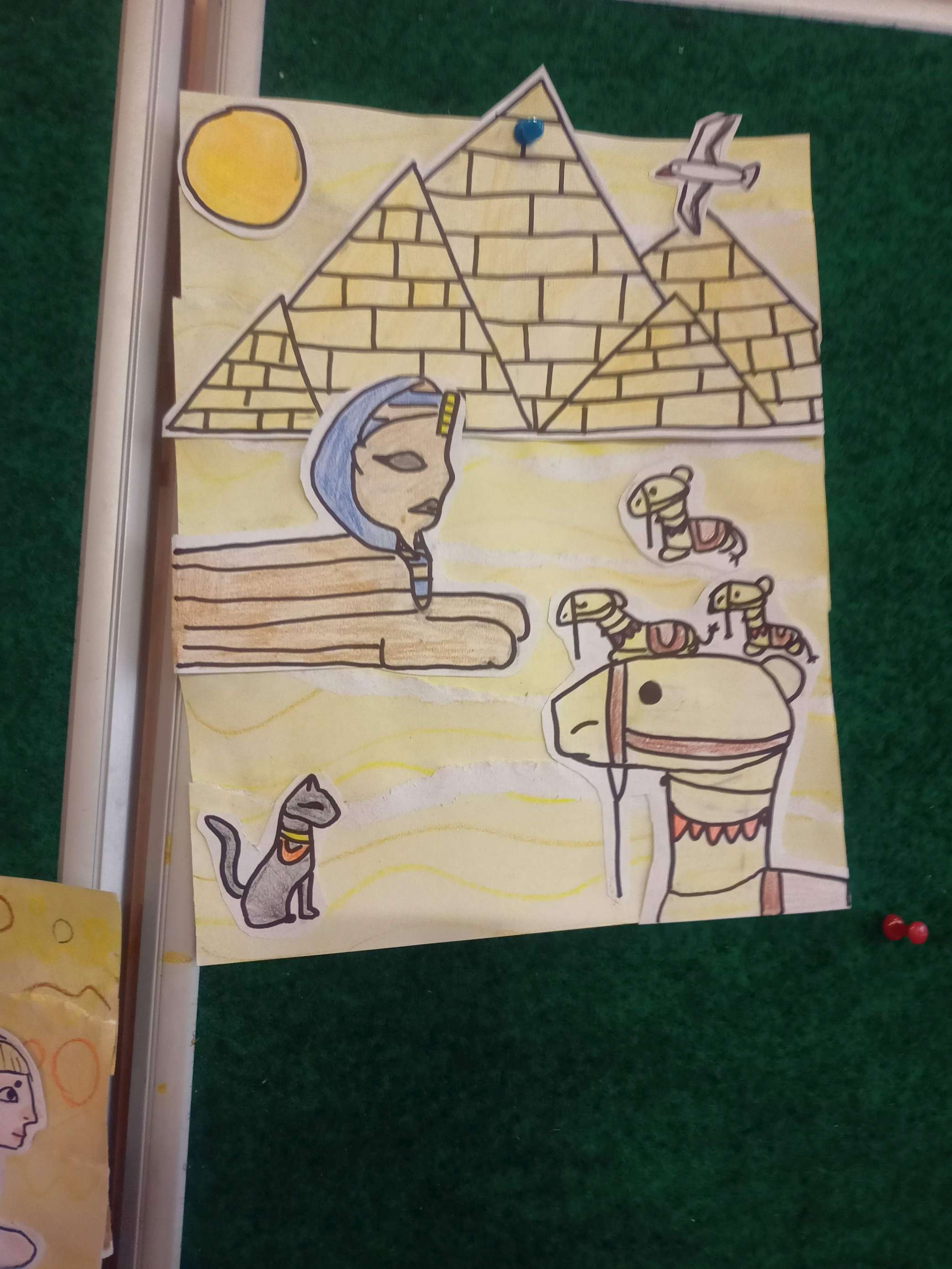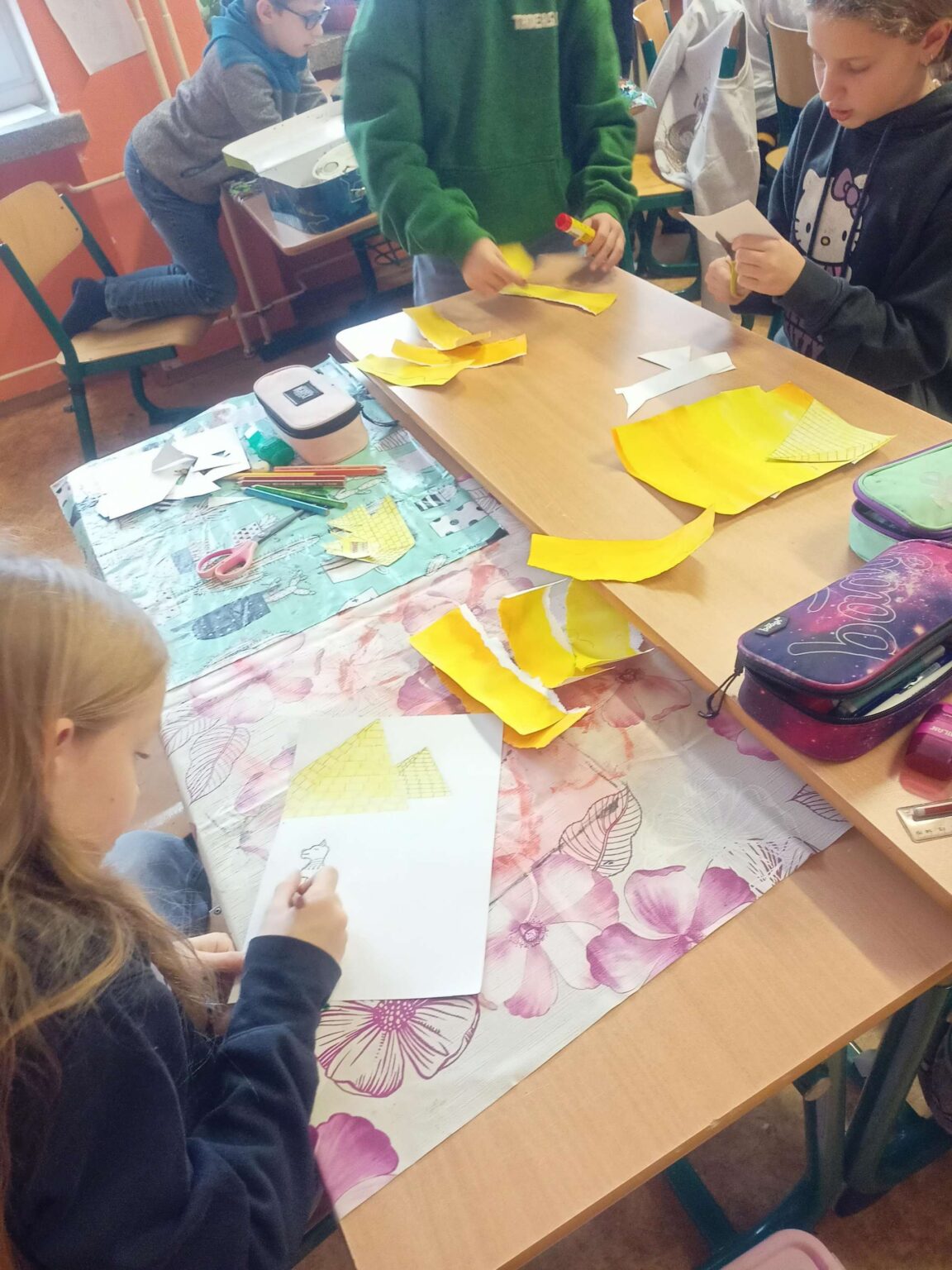 V hodinách výtvarné výchovy jsme se s žáky 5. C vydali na dobrodružnou cestu napříč písečnými dunami až do starobylého Egypta. Naše tvořivá cesta nám neumožnila jen poznávat historické symboly a kulturu tohoto fascinujícího místa, ale také rozvíjet naši kreativitu, jemnou motoriku a schopnost spolupracovat na společném projektu.