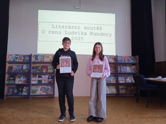 Úžasného úspěchu dosáhli naši žáci v XV. ročníku literární soutěže O cenu Ludvíka Kundery, kterou pravidelně vyhlašuje Městská knihovna Kunštát ve spolupráci s místní základní školou. Mezi 124 účastníky jsme měli i my tři zástupce – Sofii Vavříčkovou z 5. A, Amálii Krupkovou z 6. A a Vojtěcha Zábranského ze 7. B.