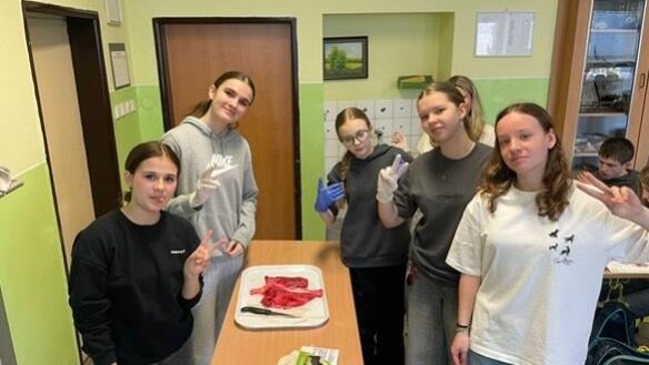 Žáci osmých ročníků měli opět příležitost prozkoumat detailně stavbu tkání a orgánů z prasete. Tentokrát jsme se zaměřili na dýchací a trávicí soustavu. Šlo o pozorování stavby průdušek a průdušinek a anatomii plic. Sledovali jsme strukturu jater a lupou jaterní lalůčky, překvapila stavba jícnu a velikost cév. U zkoumání jsme si opakovali funkci jednotlivých orgánů. Byly nachystány také mikroskopy s trvalými preparáty různých tkání. Na závěr žáci vypracovali protokol, do kterého si nakreslili a shrnuli poznatky a vypočítali BMI (body mass index). Zájem dětí o tyto laboratorní práce je velký, takže podaří-li se opět sehnat nějaký další zatím neprozkoumaný orgán, určitě se ještě do pitvy pustíme.