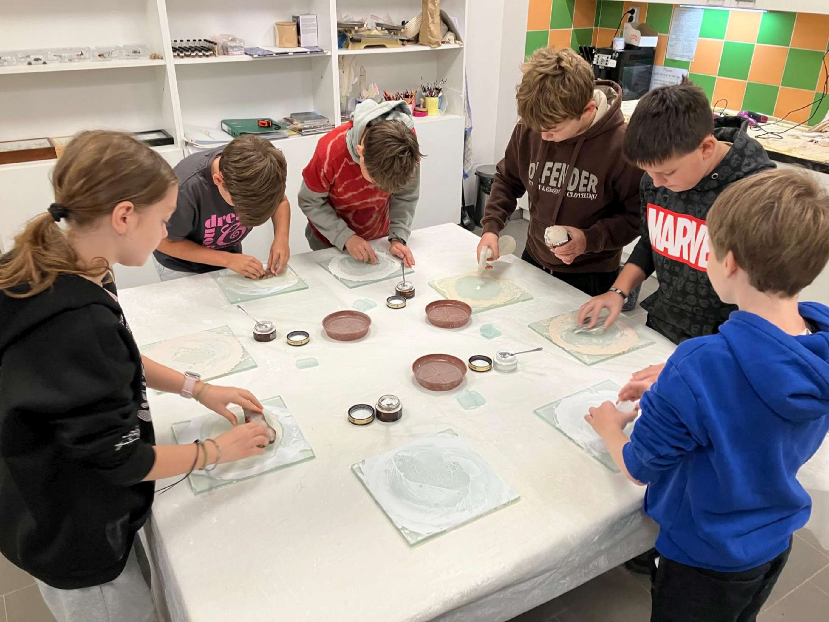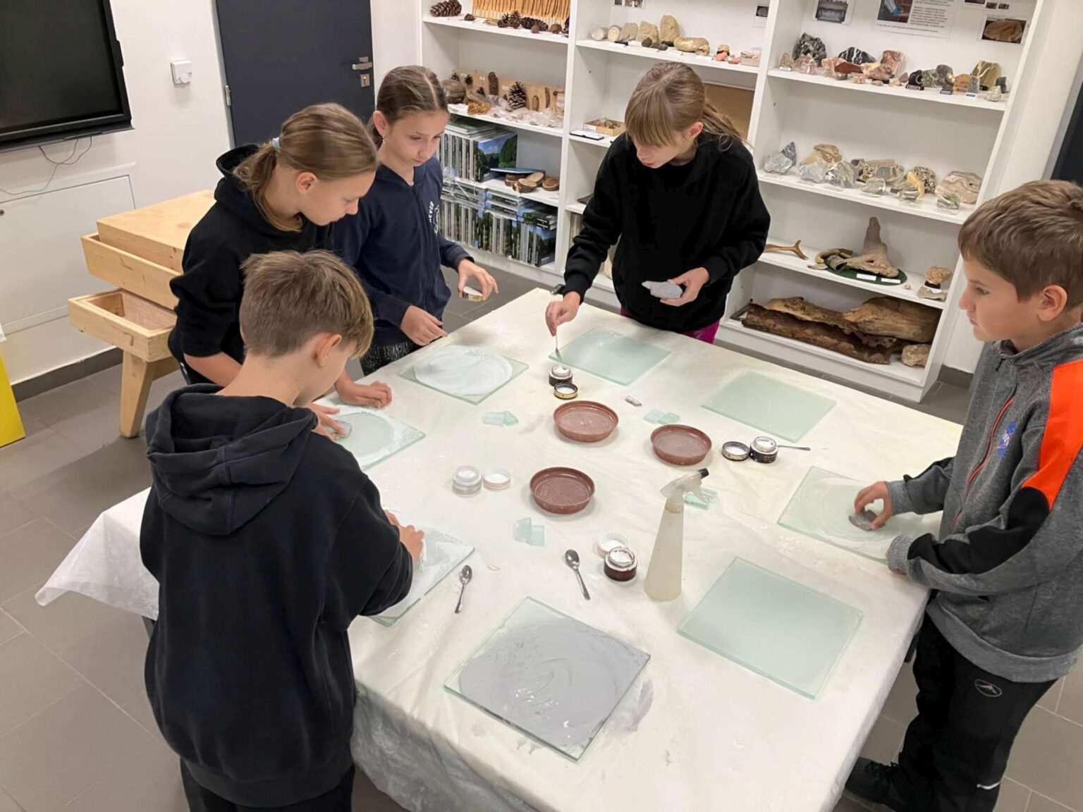 Největším zážitkem byla praktická část programu, kdy si žáci vyzkoušeli technologický postup zpracování kamenů (vápenců) – od řezání přes broušení až po leštění – vše pod odborným vedením pracovníků Domu přírody.