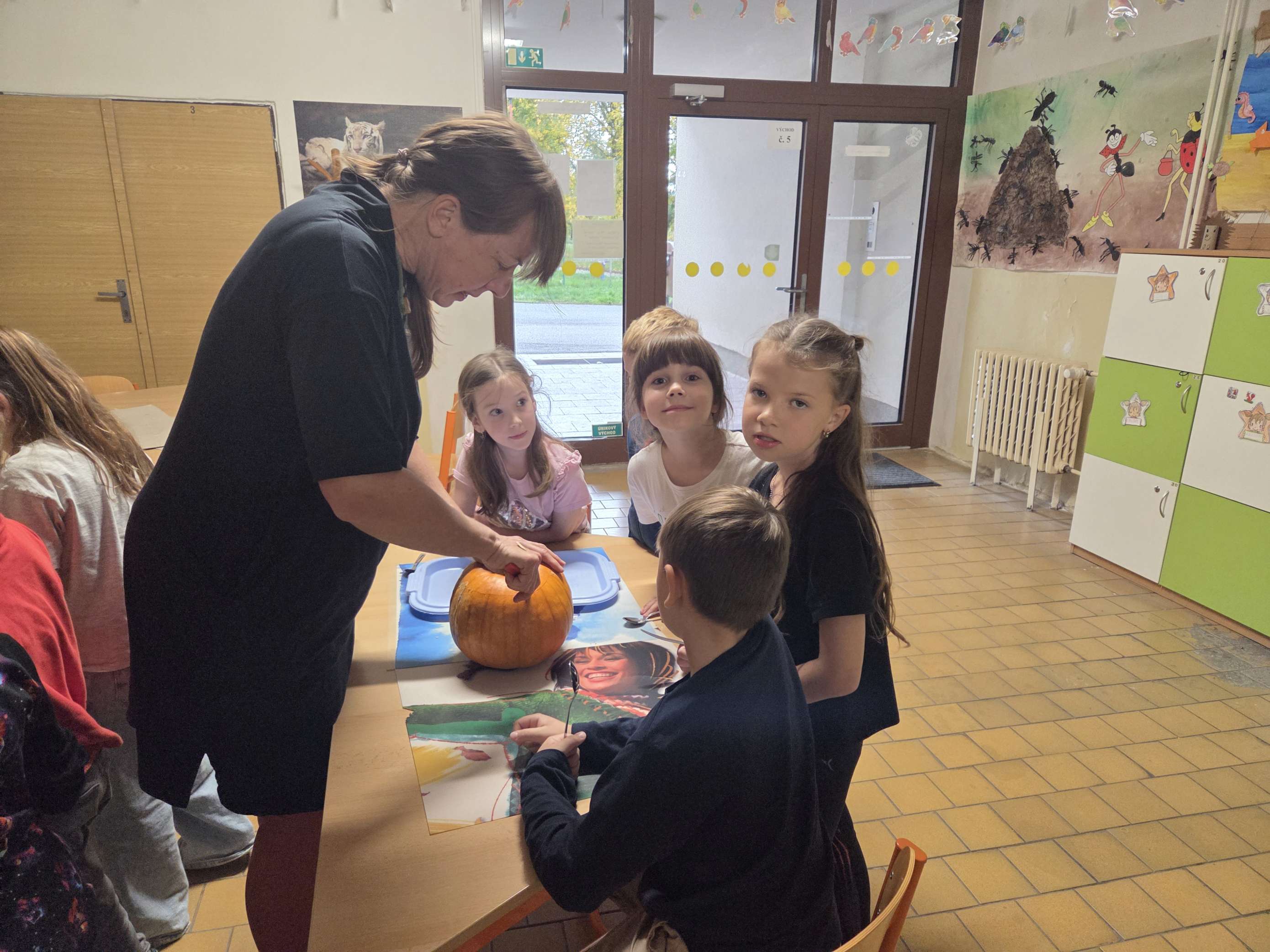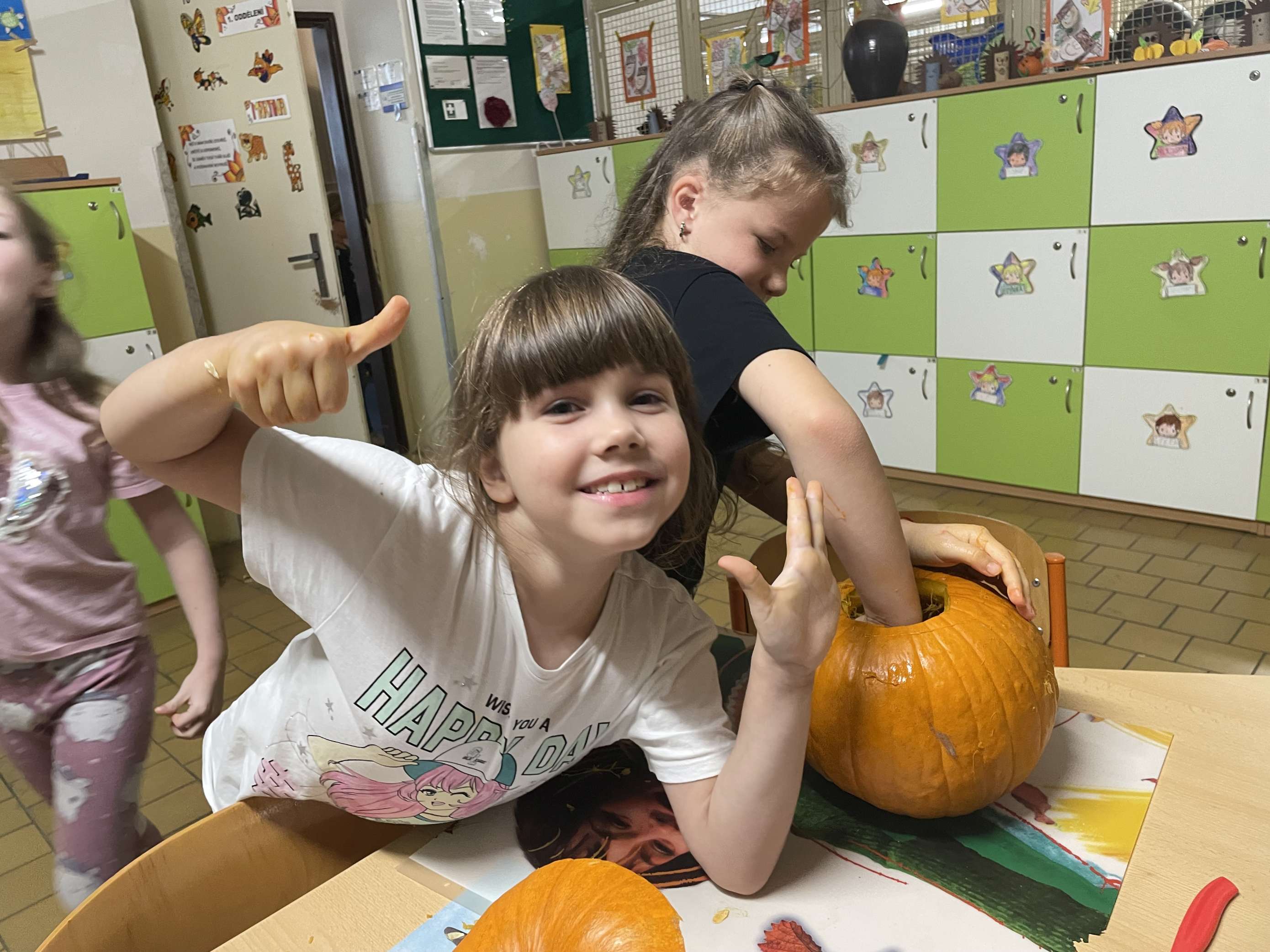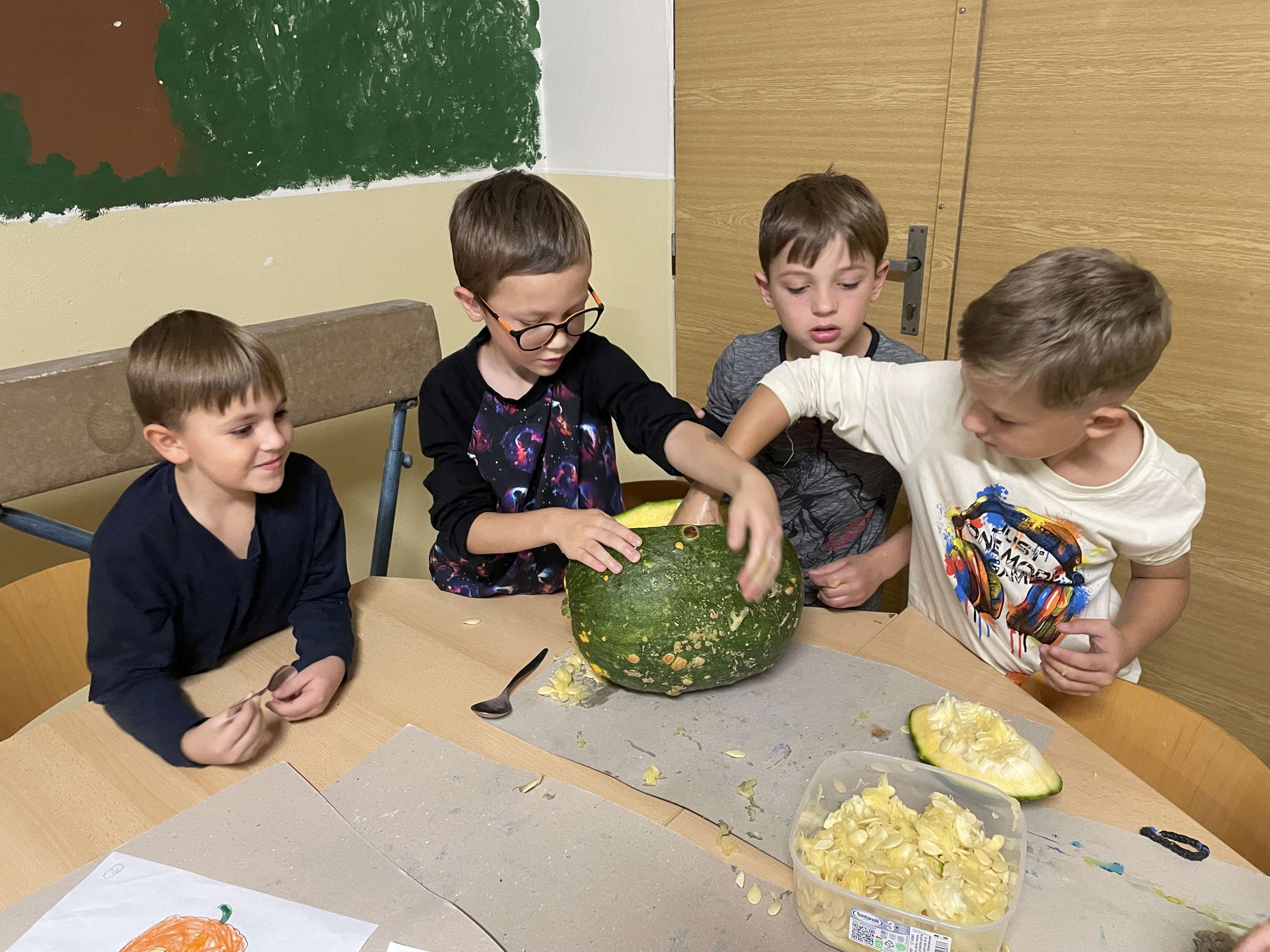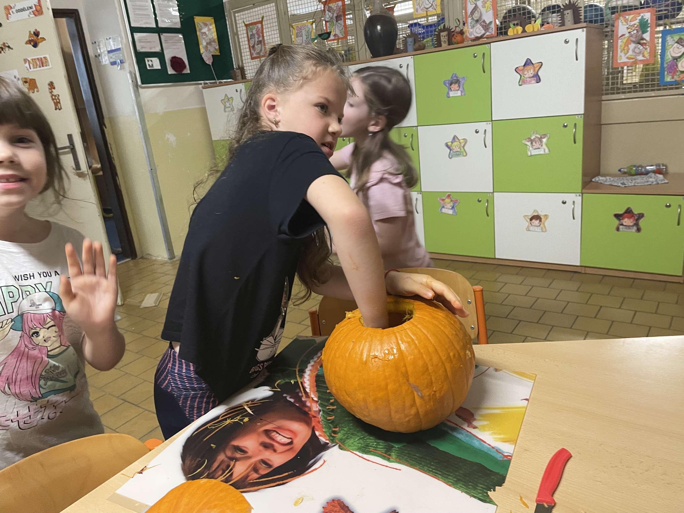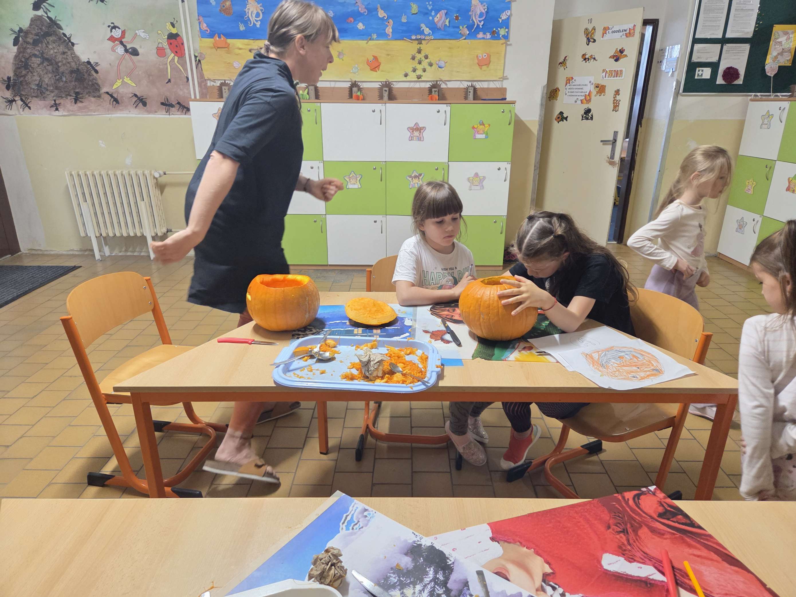 Ke konci měsíce jsme si užili i halloweenské tvoření. Děti vydlabaly strašidelné dýně, ke kterým vytvořily parádní návrhy.