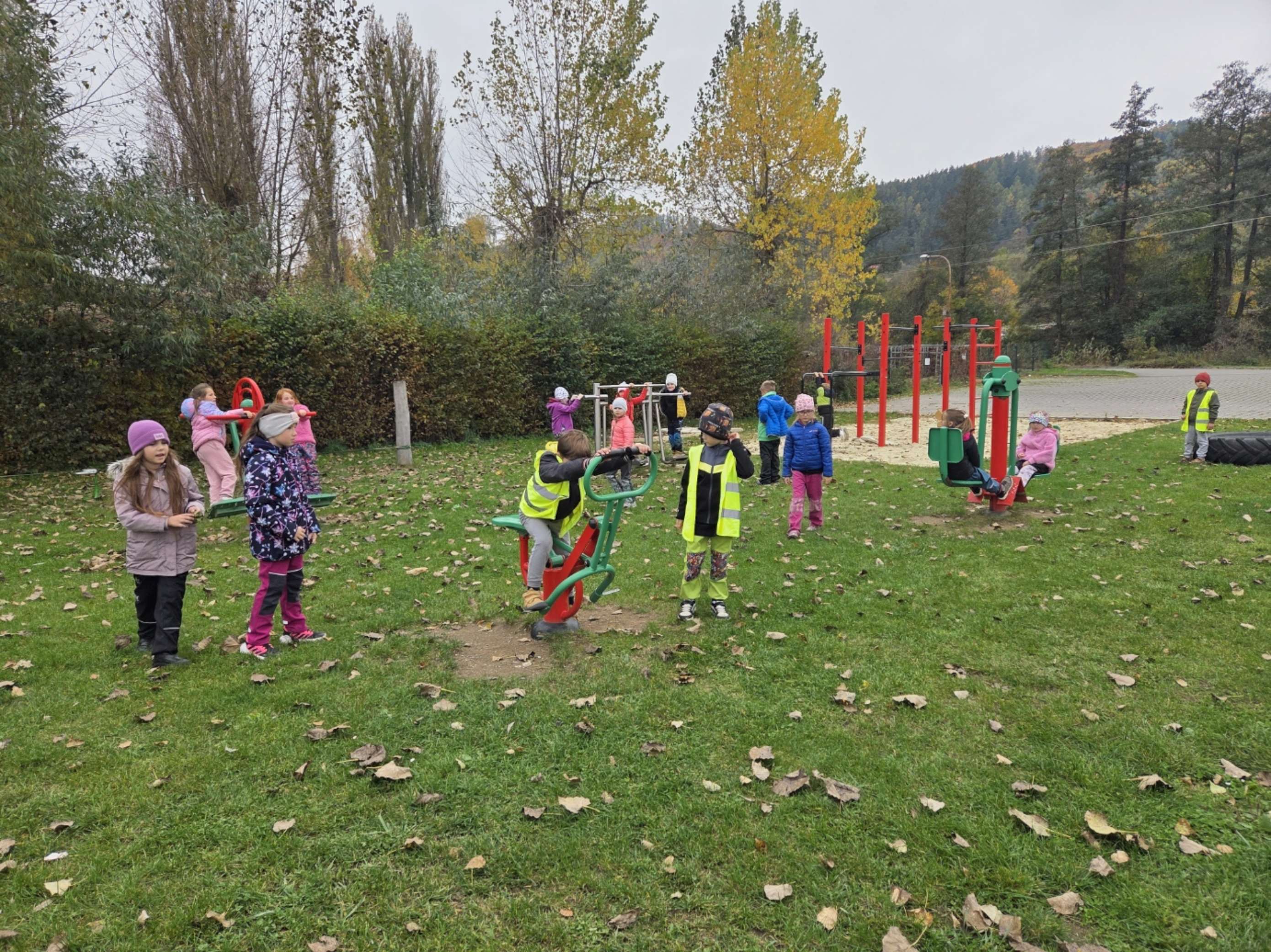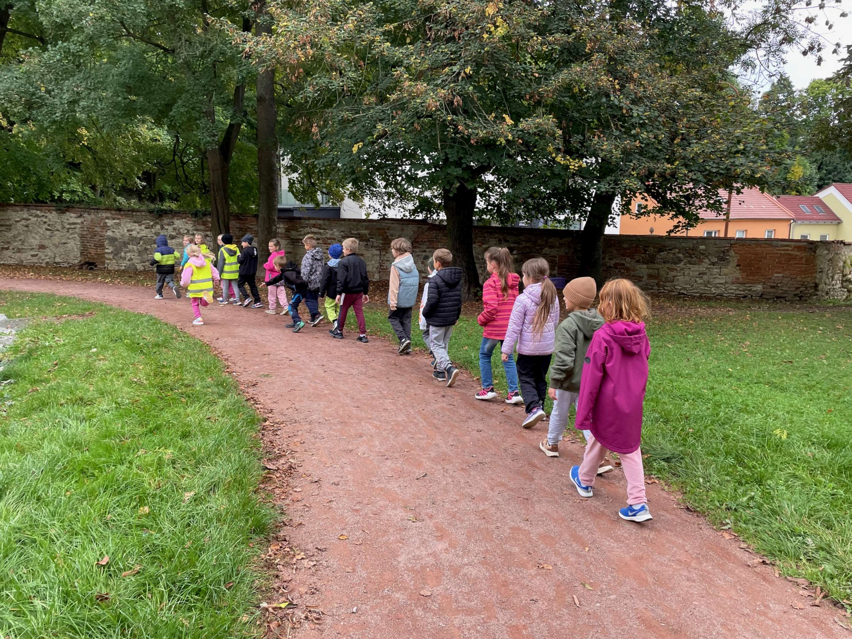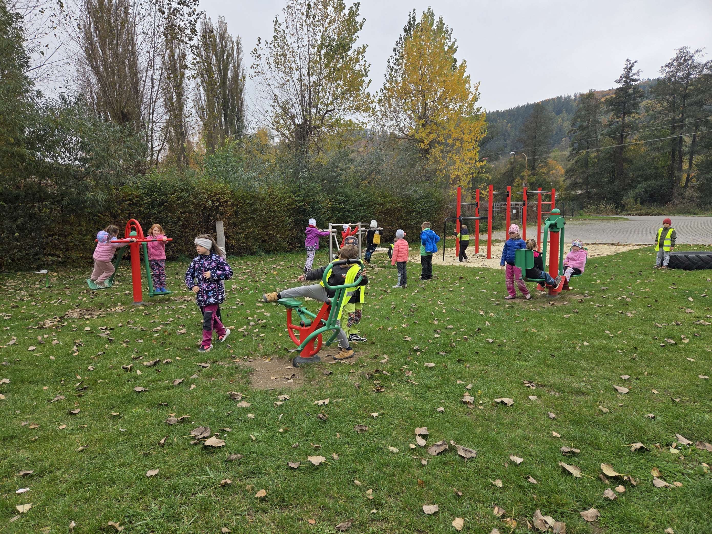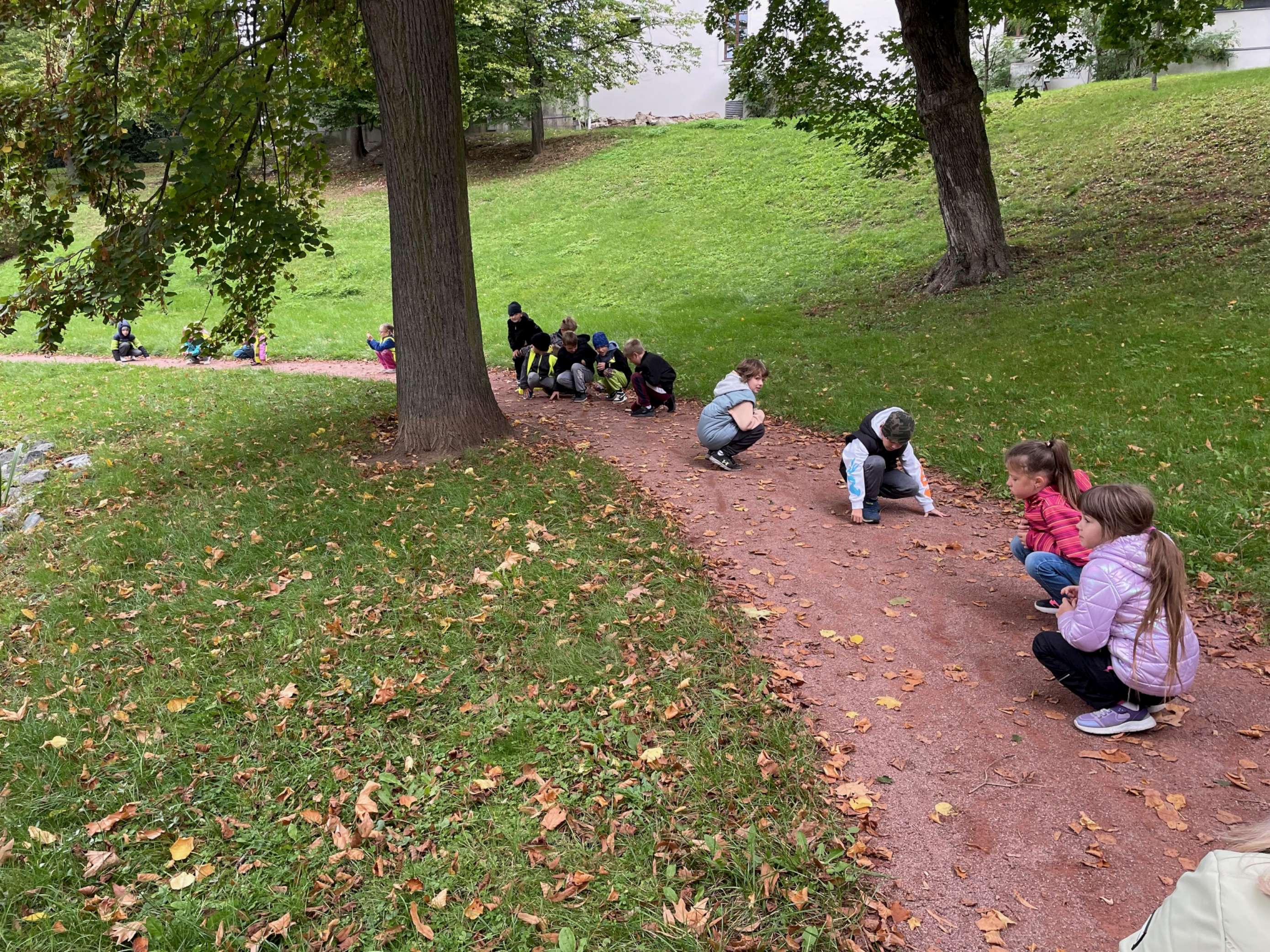 Nezapomněli jsme ani na poznávání přírody – při vycházkách jsme pozorovali, jak se mění stromy, sbírali jsme listy, šišky a šípky a povídali si o tom, jak se zvířátka připravují na zimu.