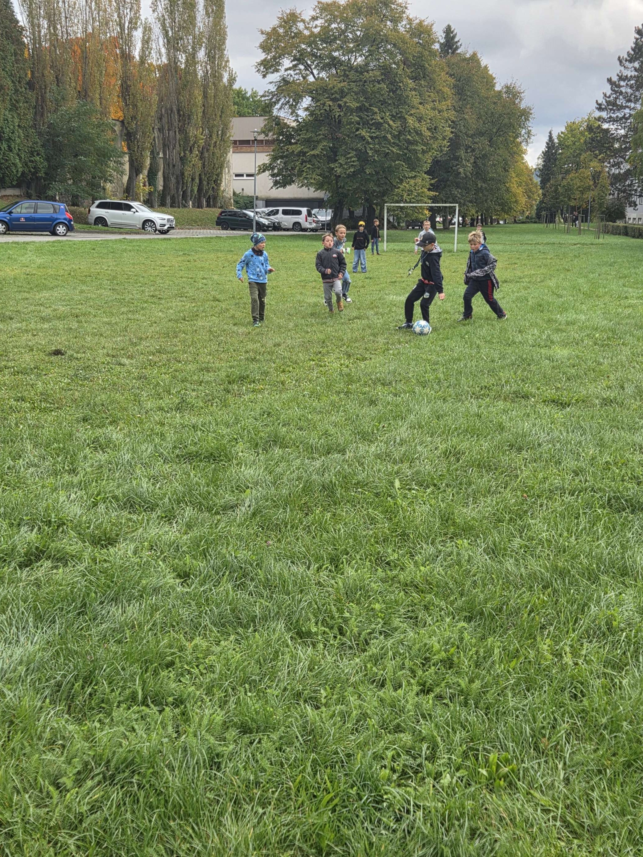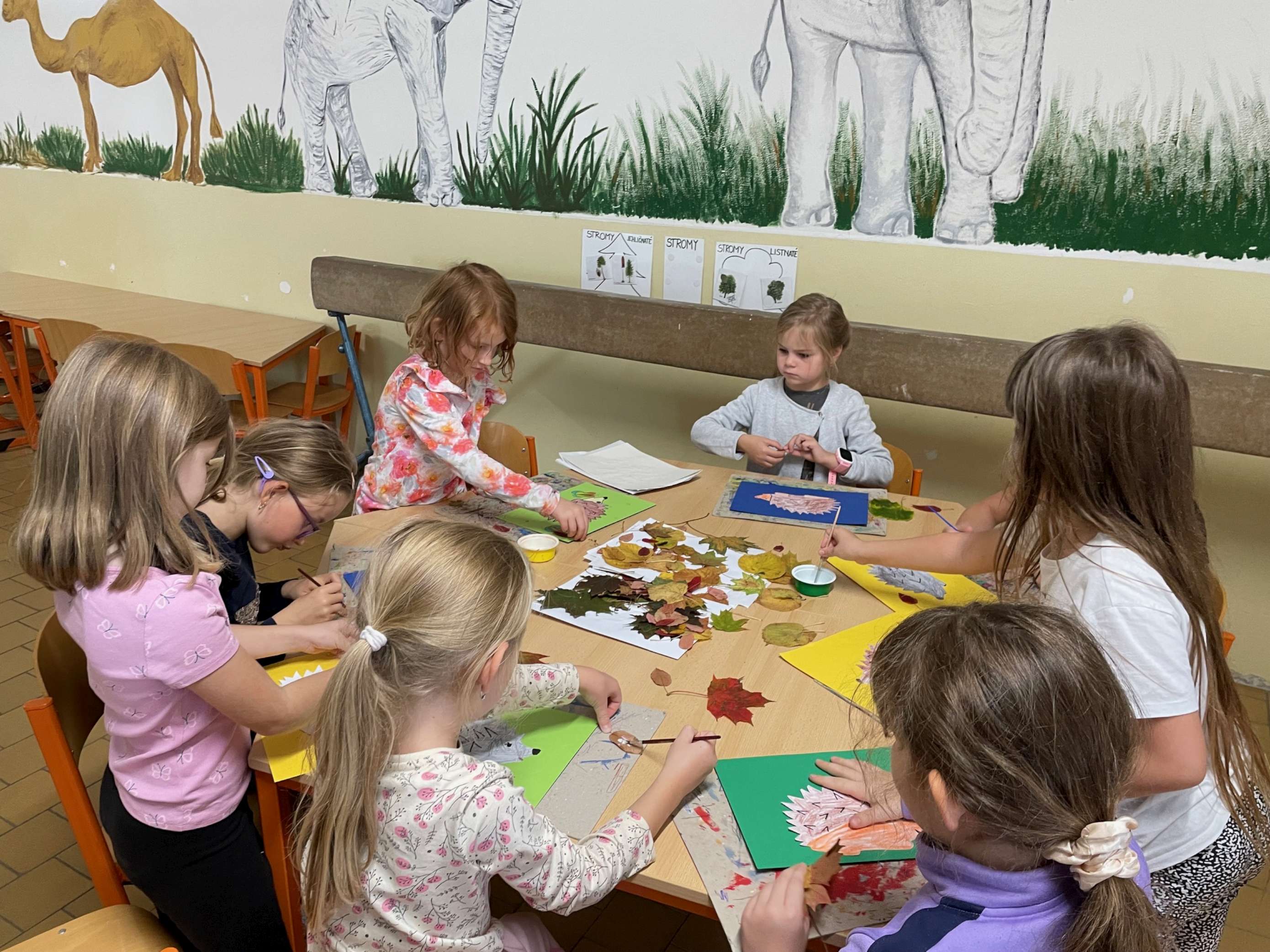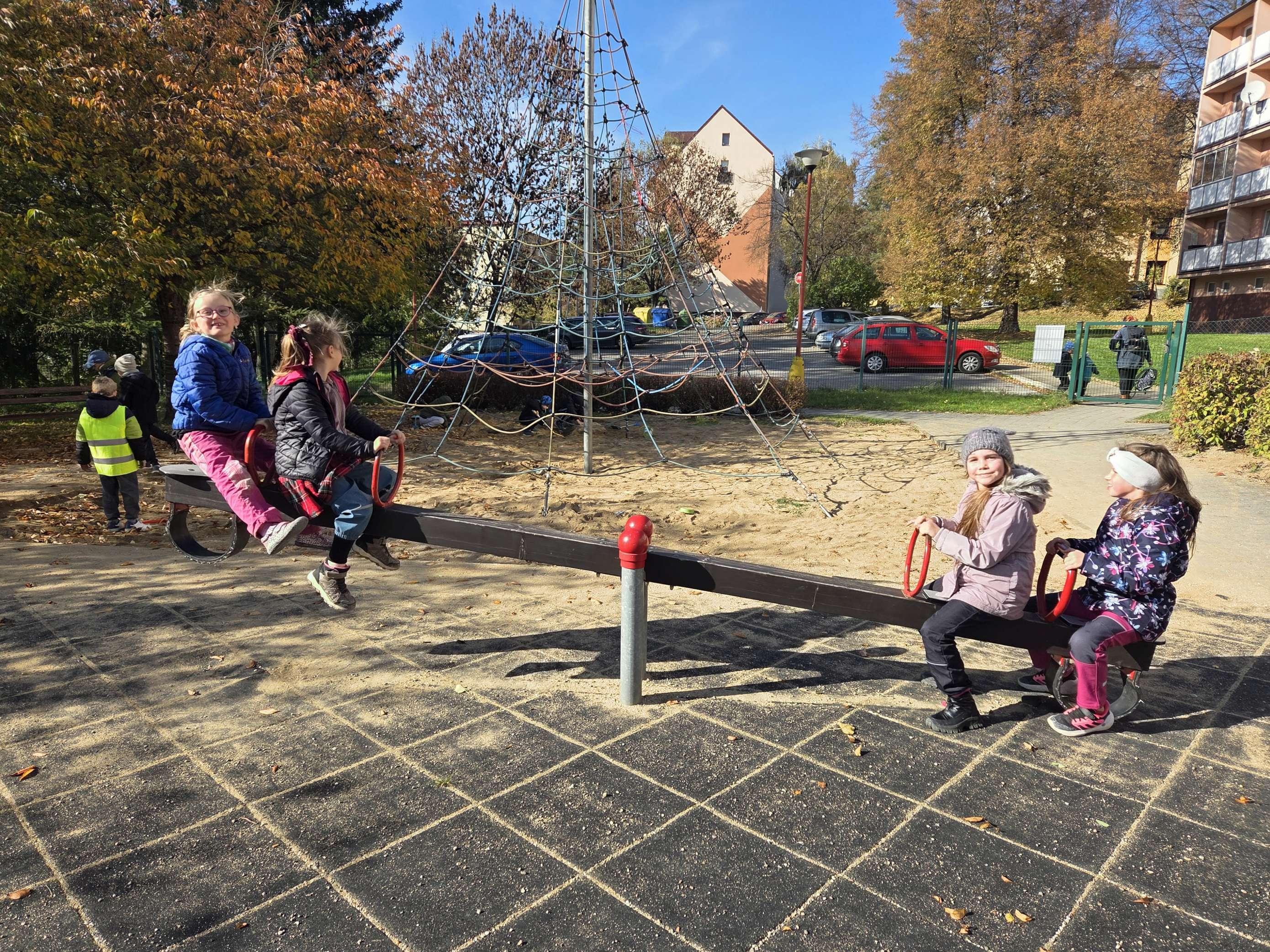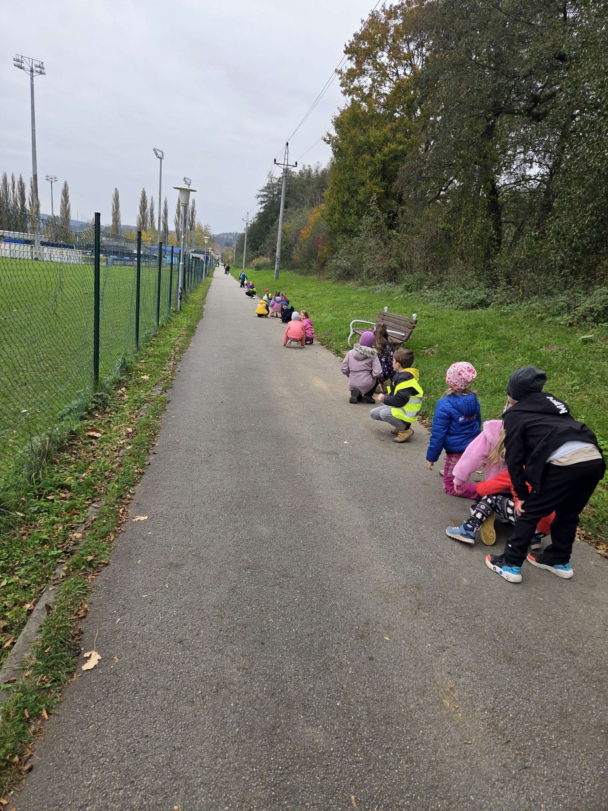 Nezapomněli jsme ani na poznávání přírody – při vycházkách jsme pozorovali, jak se mění stromy, sbírali jsme listy, šišky a šípky a povídali si o tom, jak se zvířátka připravují na zimu.
