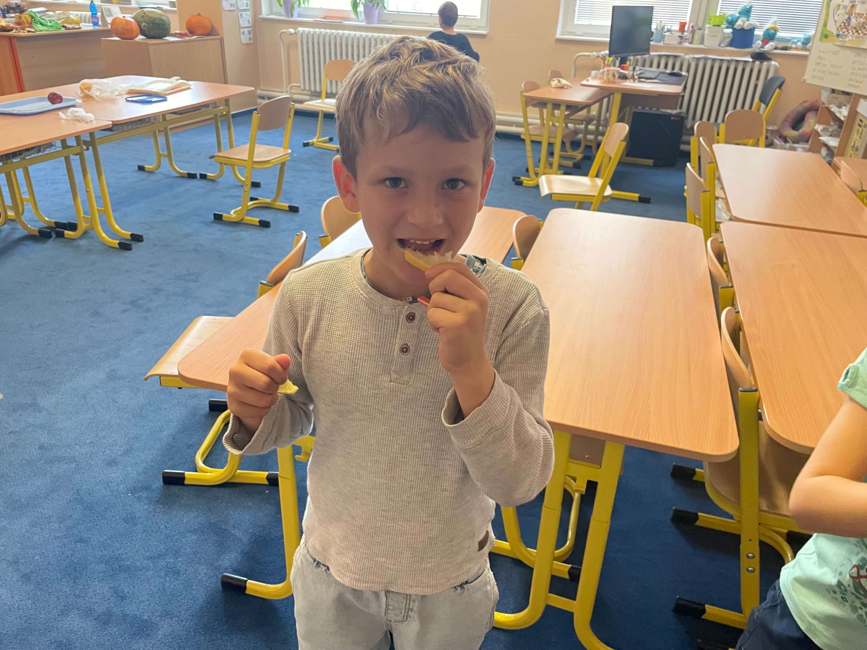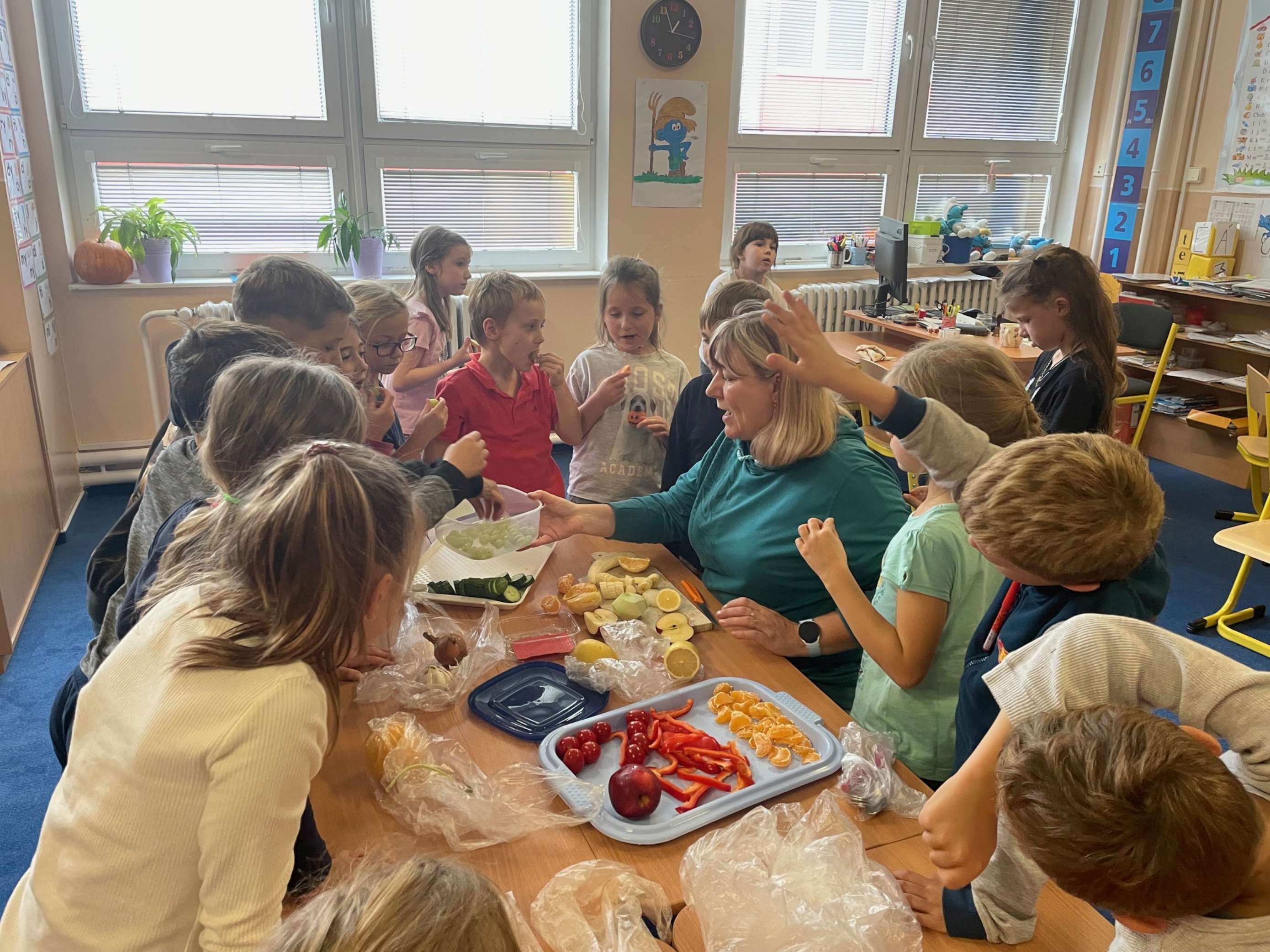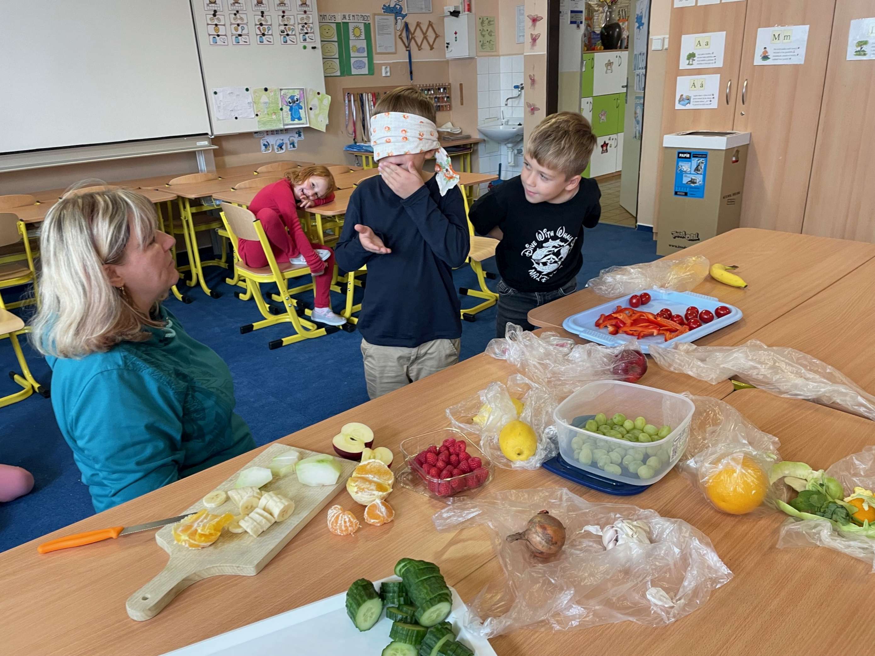 Jedno říjnové odpoledne jsme se věnovali poznávání ovoce a zeleniny všemi smysly. Děti si vyzkoušely poznávat různé druhy podle chutí, vůně, tvaru i barvy. Společně jsme si povídali o tom, odkud jednotlivé plody pocházejí, proč jsou zdravé a jaké mají vitamíny. Na závěr jsme připravili i ochutnávkový tác plný ovoce a zeleniny.