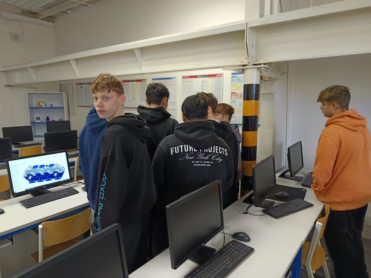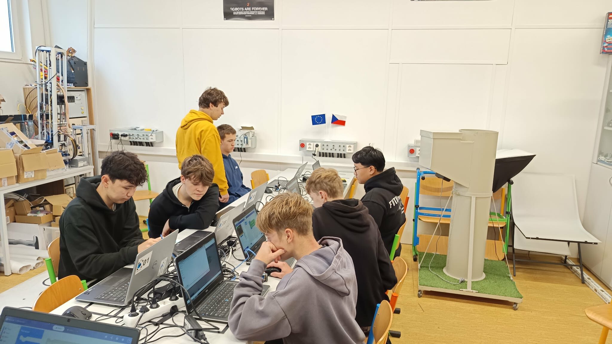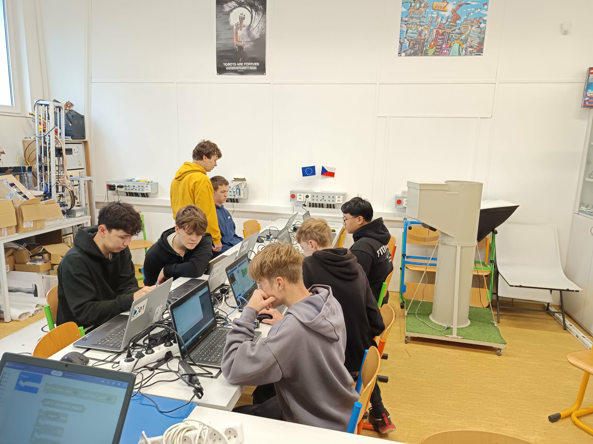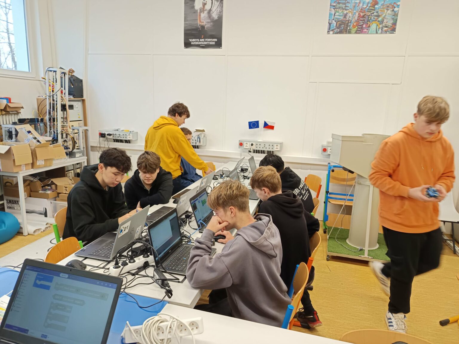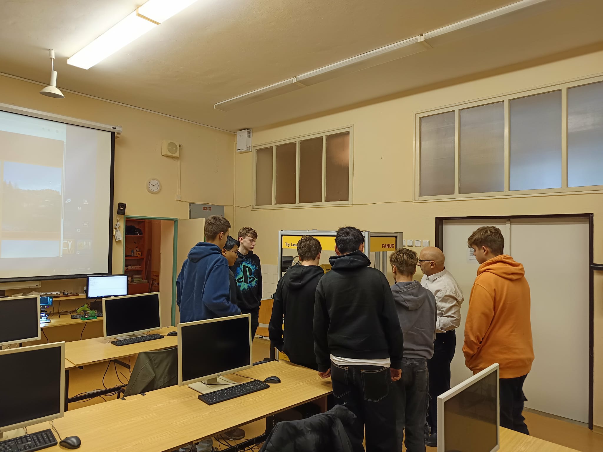 V pátek 21. listopadu zájemci z řad 9. ročníku navštívili SPŠ Jedovnice, kde si mohli během dopoledne vyzkoušet, jak vypadá výuka odborných předmětů na uvedené škole. A musíme podotknout, že zájemců z řad našich deváťáků byly více jak dvě desítky. Prošli jsme si pěti stanovišti, kde jsme mohli vidět ukázky z výuky robotiky, 3D programování a tisku, dílen a programování.