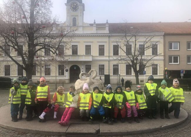 Navštívili jsme městskou knihovnu, kde jsme si povídali o tom, co se jedné noci stalo ve chlévě. Cestou zpátky do školky jsme si prohlédli vánoční výstavu v centru města.