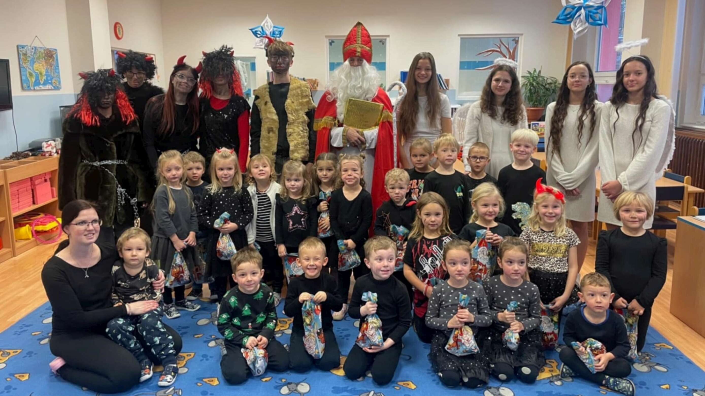 Pro42025Aktuality MŠ Černý den ve školce se nám moc vydařil. Hráli jsme si na čertíky, tvořili veselé čerty a čertovský řetěz. Nakonec nás navštívil Mikuláš se svou družinou a potěšil děti dárečky.