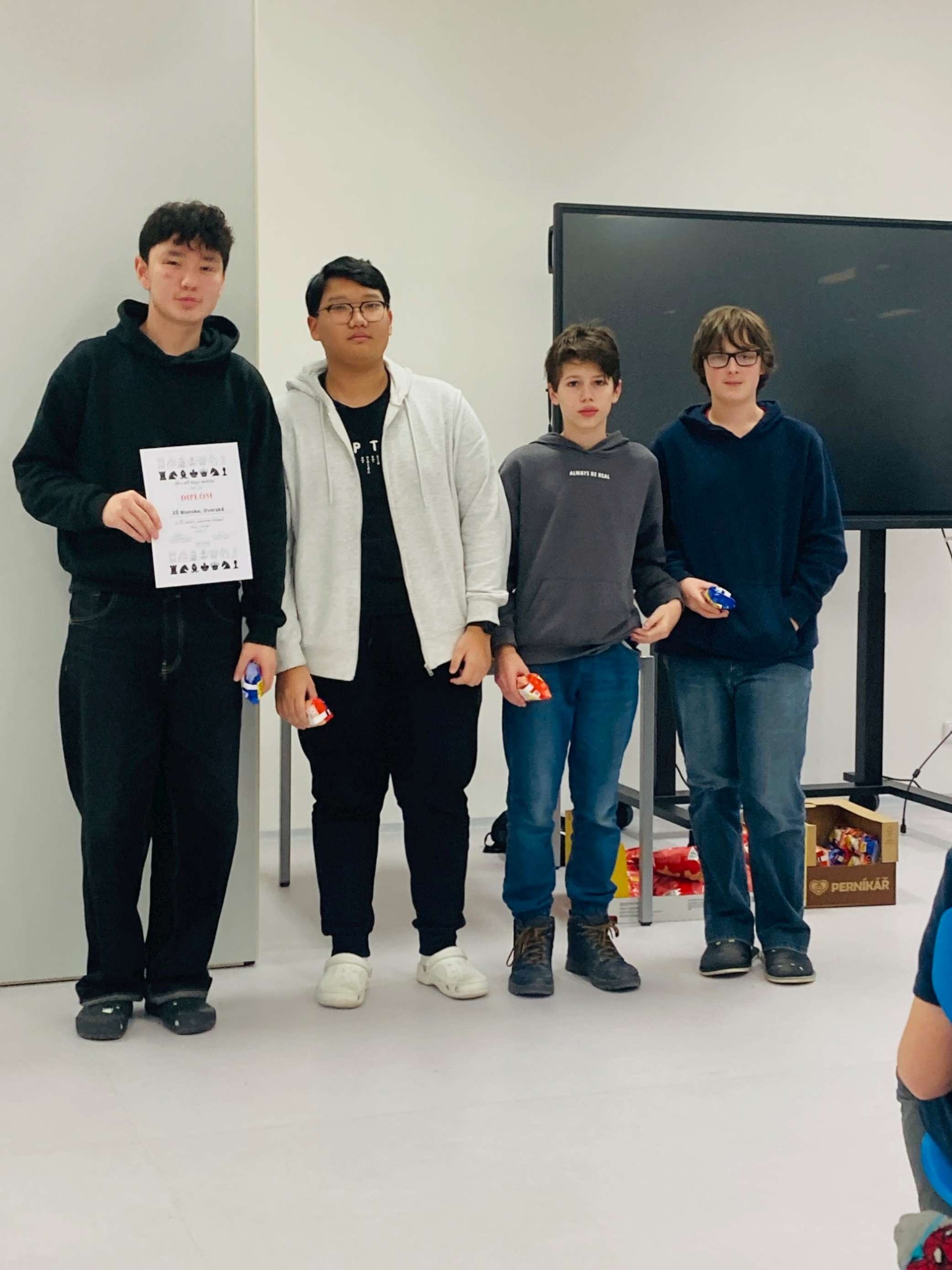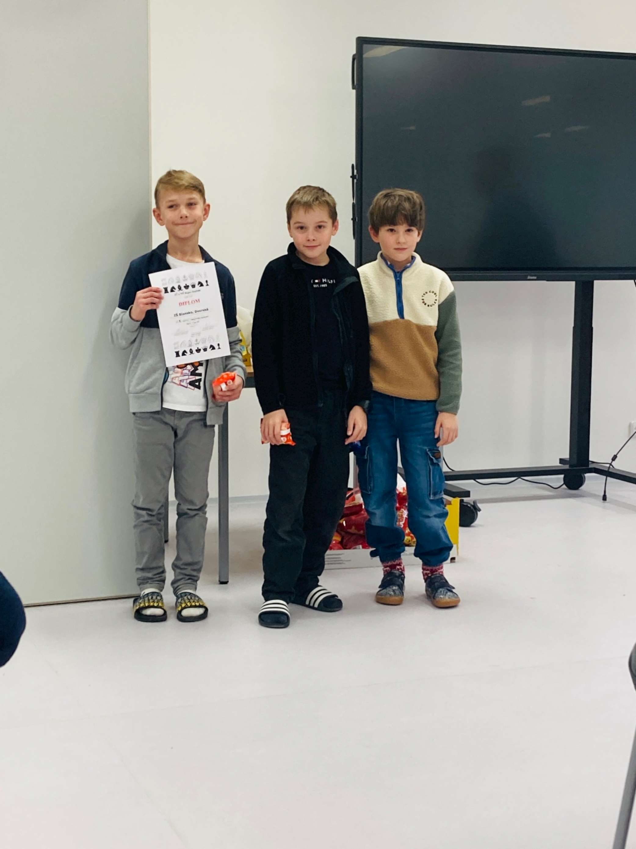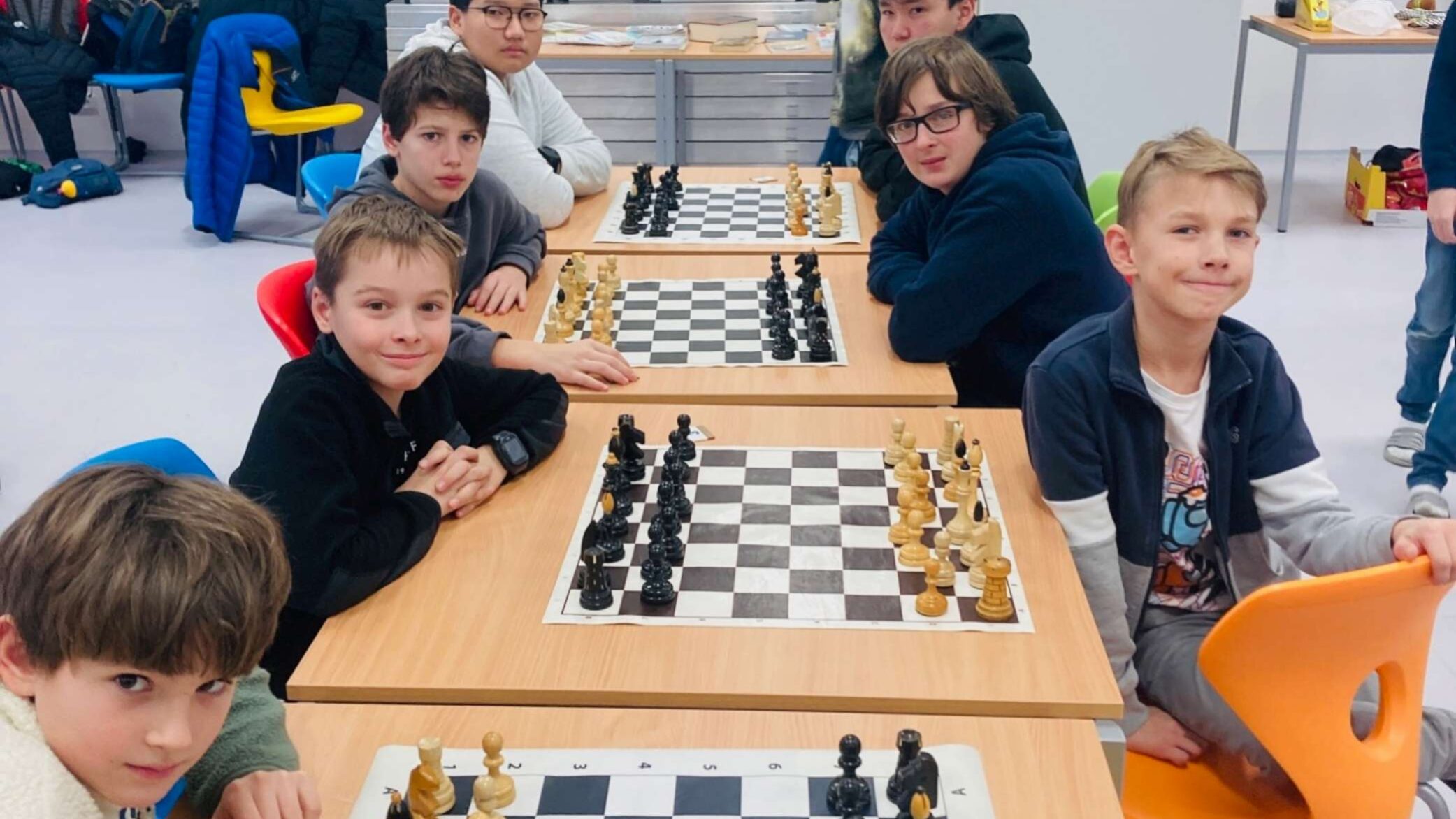 Vybraní šachisti se 3. 12. zúčastnili okresního přeboru v Rájci-Jestřebí. V této nelehké hře hrdinně reprezentovali školu v mnoha utkáních. Mladší žáci byli bohužel v nevýhodě, protože byli v týmu pouze tři – Dominik Rychnovský, Teodor Kala a Max Mareš, obsadili 9. místo. Starší žáci ve složení Radovan Sýkora, Vojtěch Zábranský, Enkhzul Enkhkhuslen a Badral Khanbileg vybojovali 7. místo, přičemž poslední dva jmenovaní prohráli pouze jeden a dva zápasy z devíti. Turnaj probíhal v krásných prostorách školy a ve velmi příjemném duchu.