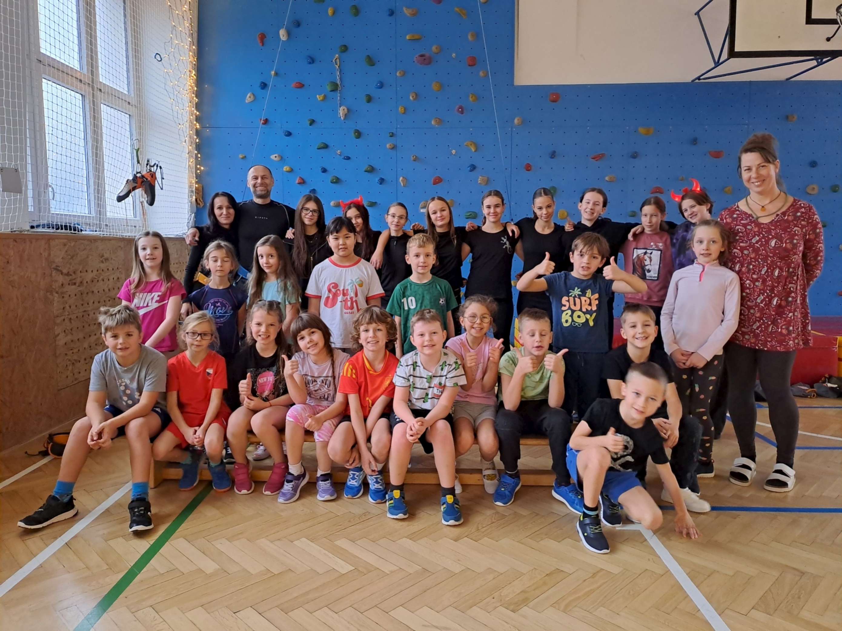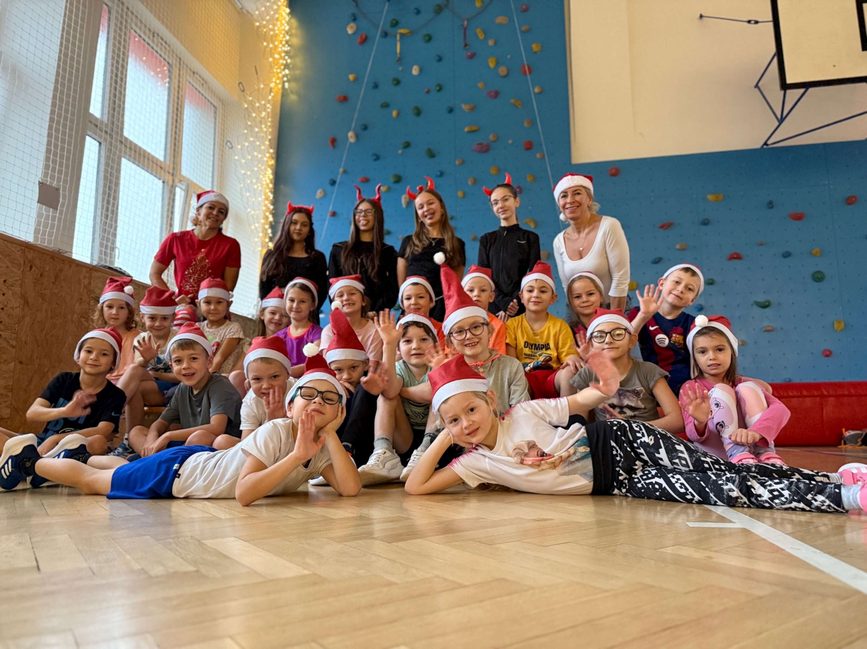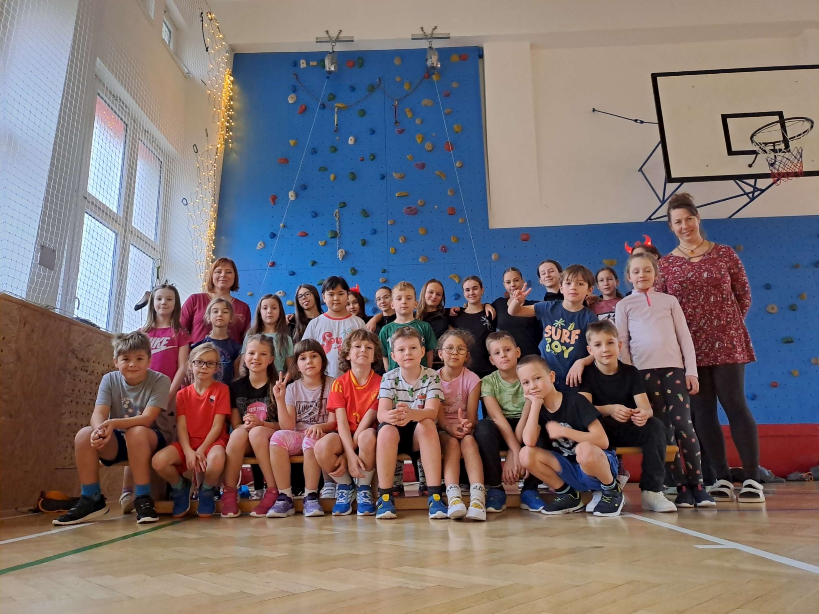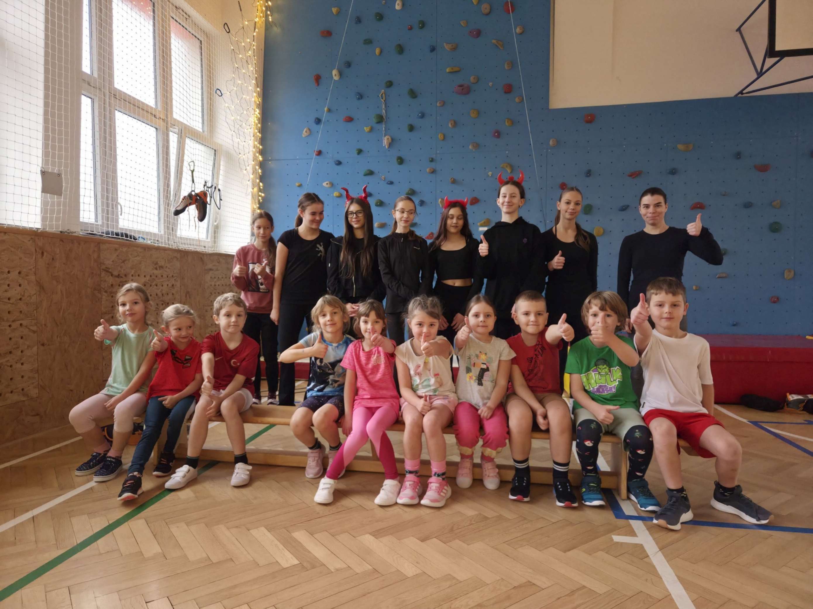 4. 12. se naše velká tělocvična na chvíli proměnila v takové naše školní „peklíčko“. Pro naše prvňáčky a druháčky jsme nachystali čertovské aktivity, jako třeba „čertovské puzzle“, závod „čertů proti sněhulákům“, hod na „čertovské vidle“ a především lezecké aktivity na naší lezecké stěně. Jak si celou akci užila naše drobotina, posuďte sami podle přiložených fotek.