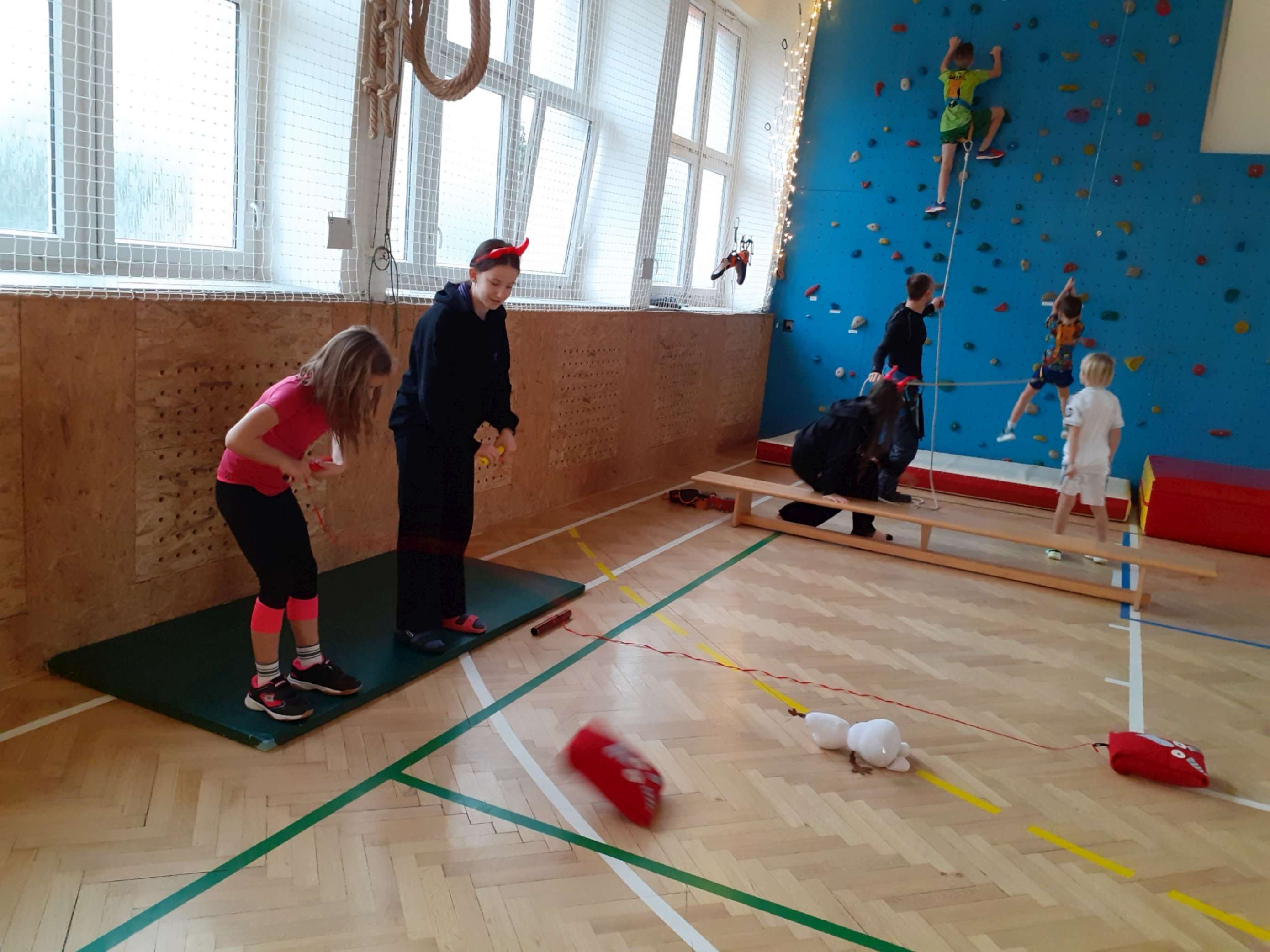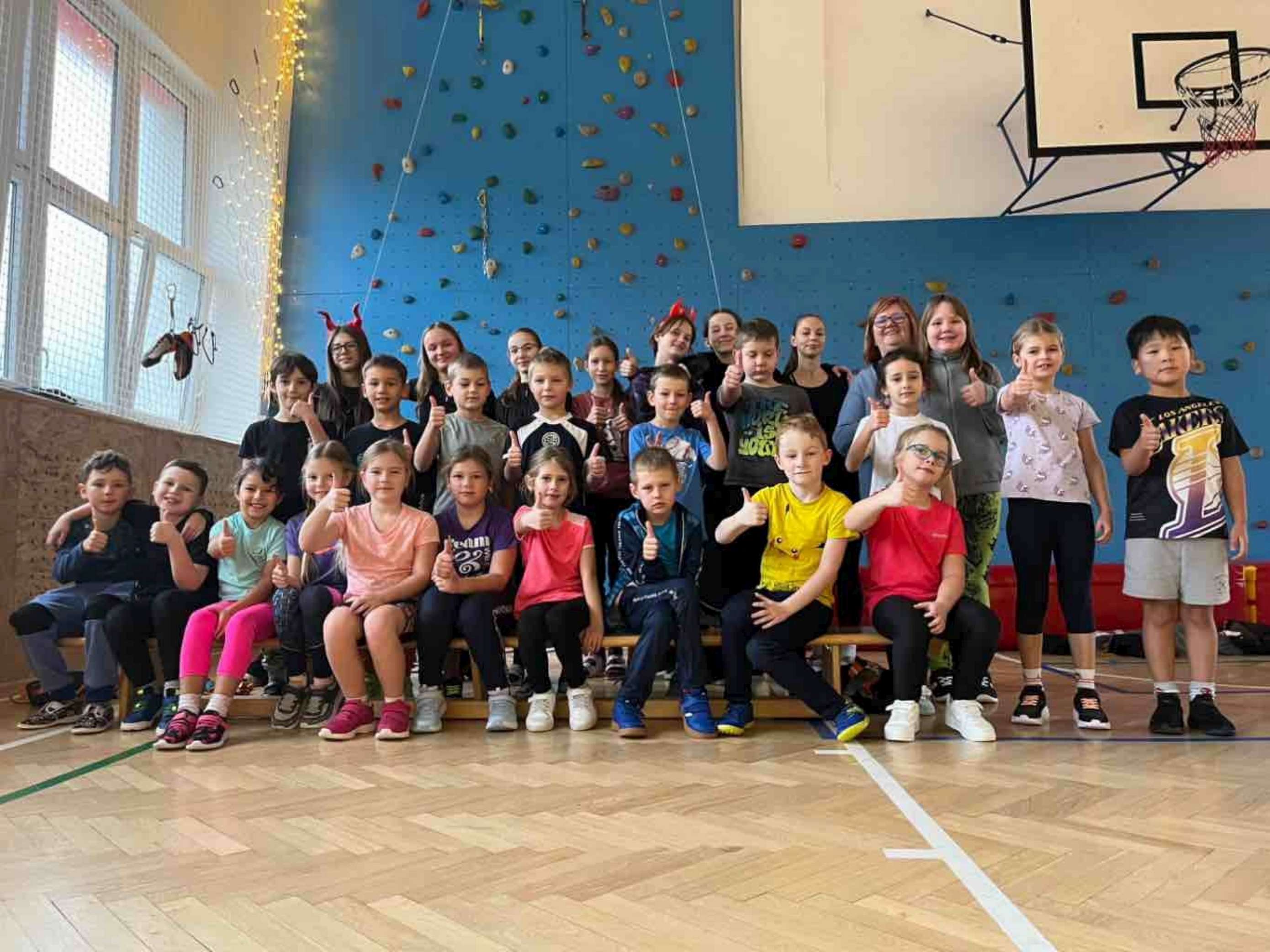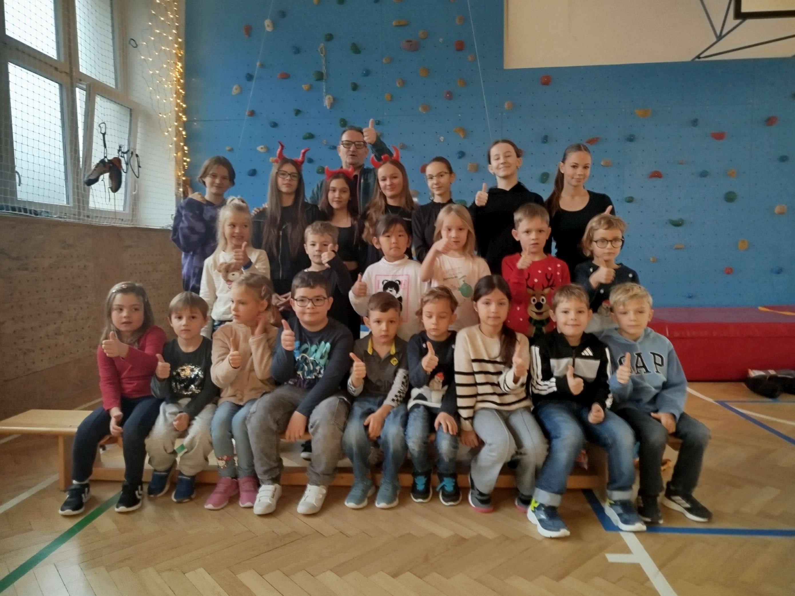 4. 12. se naše velká tělocvična na chvíli proměnila v takové naše školní „peklíčko“. Pro naše prvňáčky a druháčky jsme nachystali čertovské aktivity, jako třeba „čertovské puzzle“, závod „čertů proti sněhulákům“, hod na „čertovské vidle“ a především lezecké aktivity na naší lezecké stěně. Jak si celou akci užila naše drobotina, posuďte sami podle přiložených fotek.