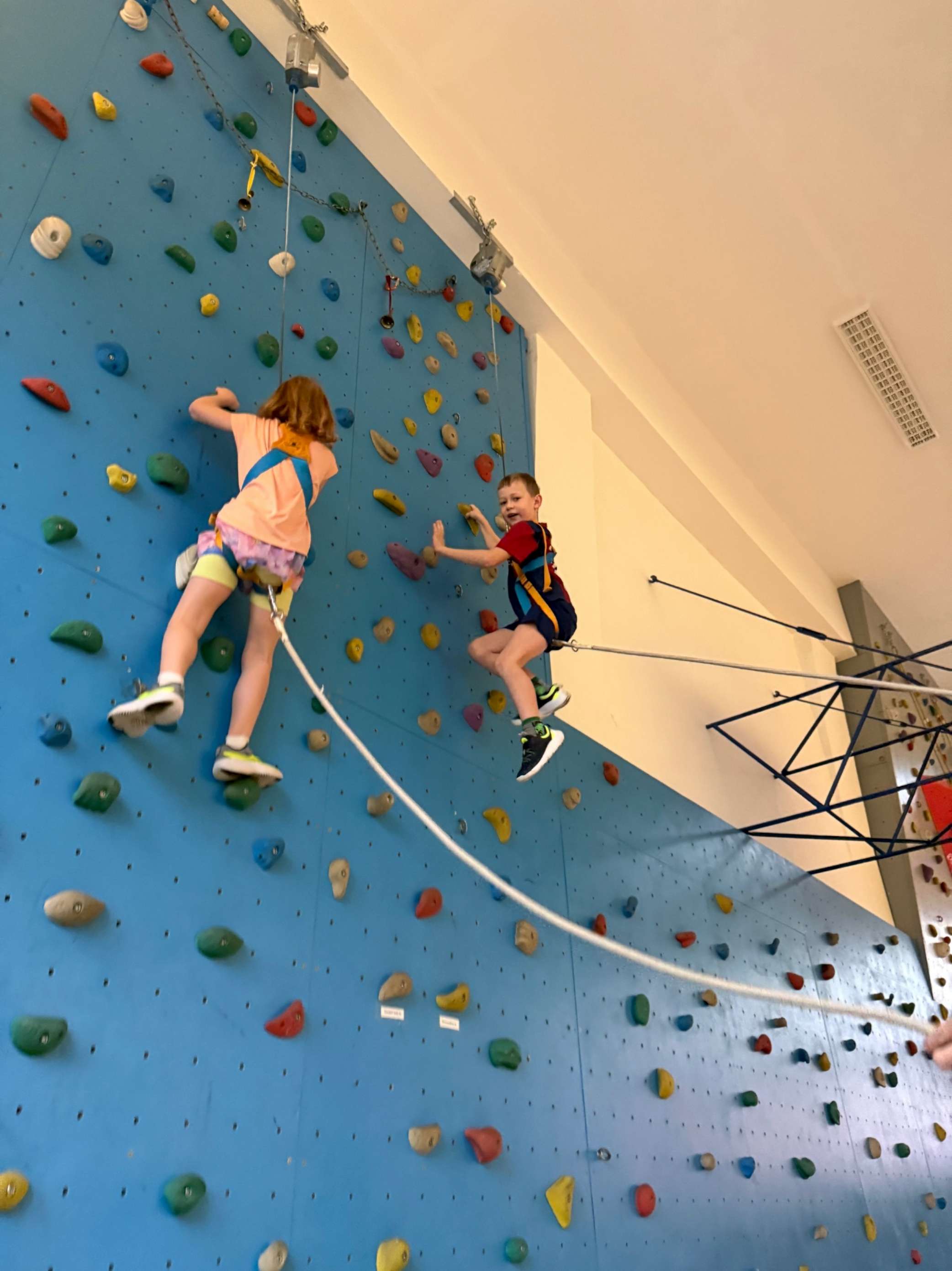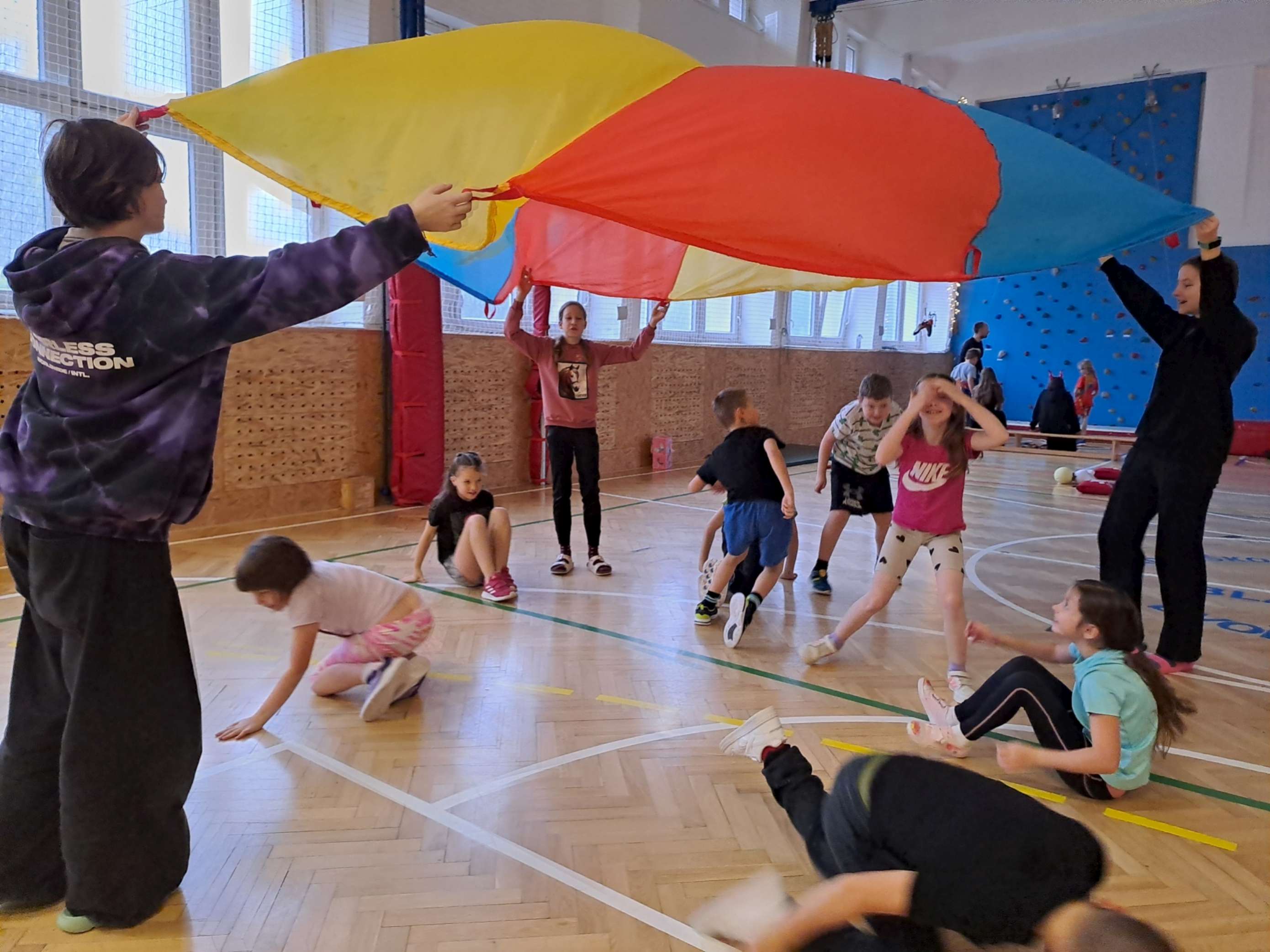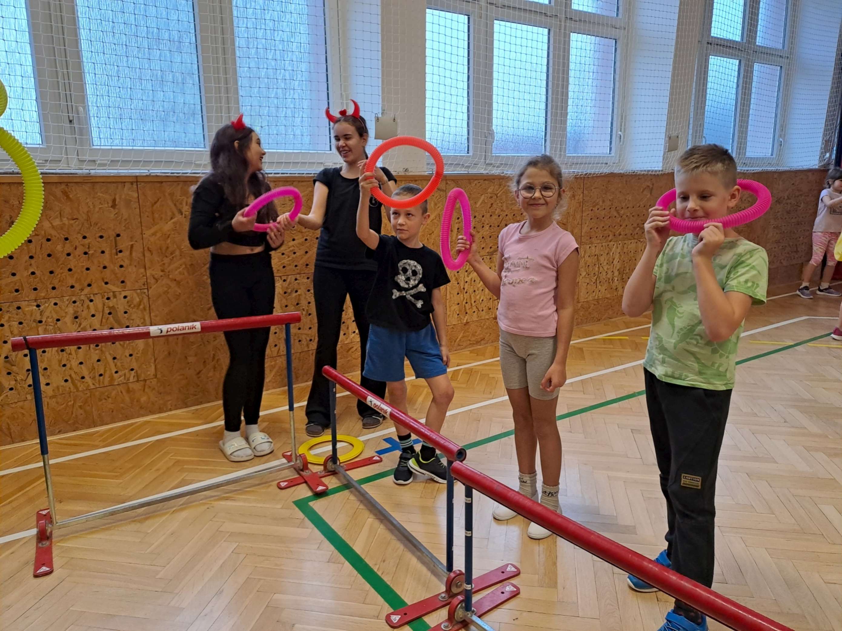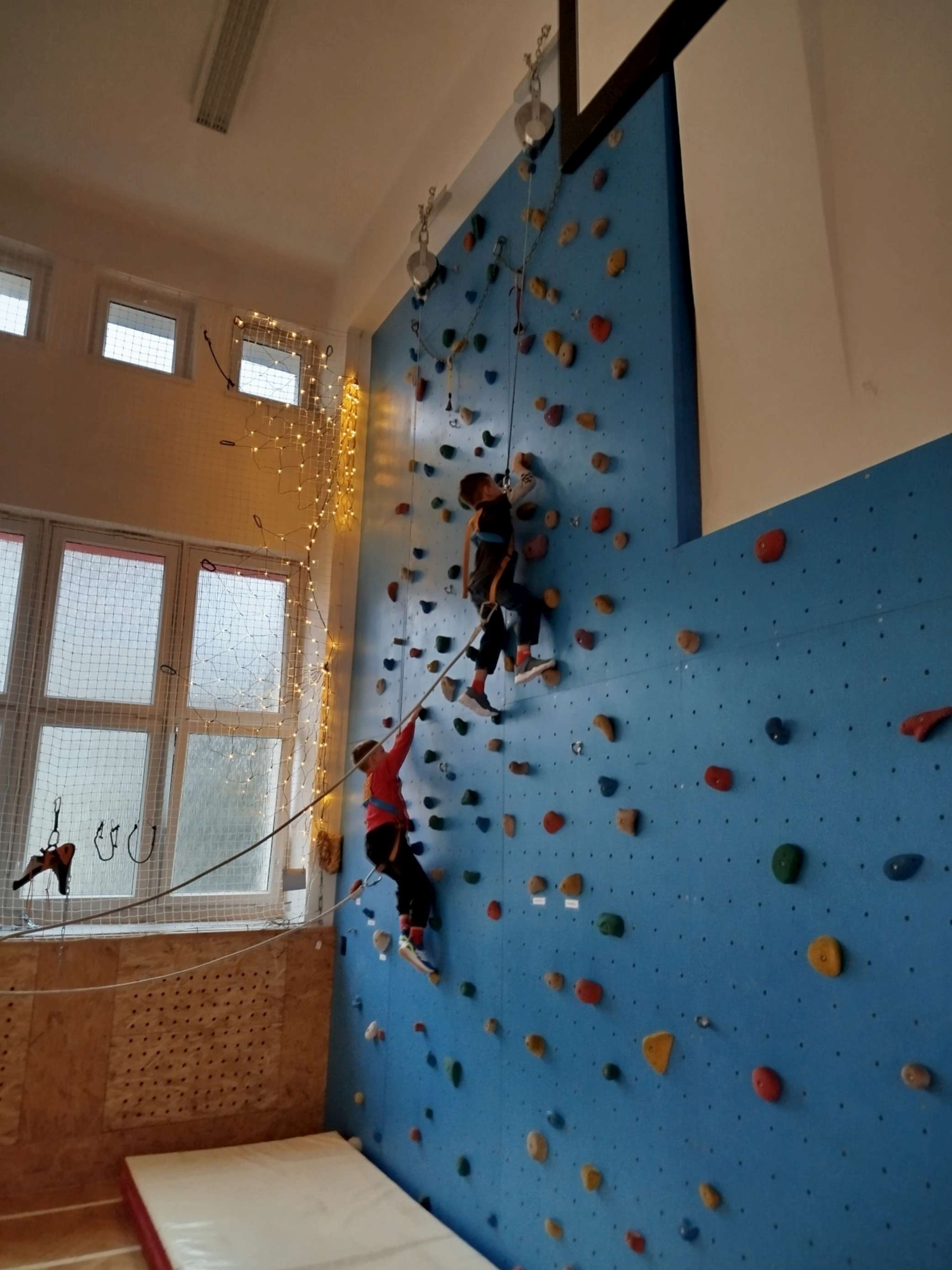 4. 12. se naše velká tělocvična na chvíli proměnila v takové naše školní „peklíčko“. Pro naše prvňáčky a druháčky jsme nachystali čertovské aktivity, jako třeba „čertovské puzzle“, závod „čertů proti sněhulákům“, hod na „čertovské vidle“ a především lezecké aktivity na naší lezecké stěně. Jak si celou akci užila naše drobotina, posuďte sami podle přiložených fotek.