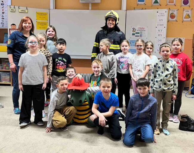 Ve druhých třídách to tentokrát pěkně „jiskřilo“ – dorazil totiž preventivní program Hasík! Děti navštívil profesionální hasič Kamil spolu s dobrovolným hasičem Luckou a maskotem Hasíkem a hned bylo jasné, že o zábavu i nové poznatky nebude nouze.