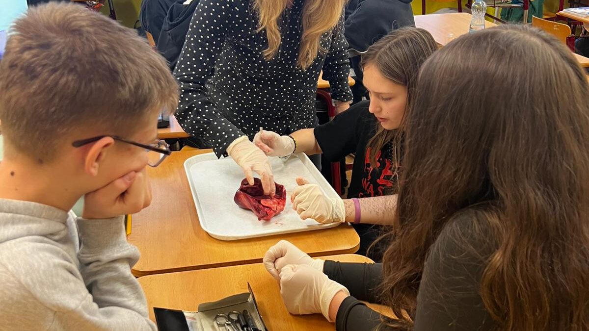 V hodinách přírodopisu se žáci 8. ročníku seznámili se stavbou srdce netradiční, ale velmi názornou formou – pitváním prasečího srdce. Tento praktický pokus jim umožnil lépe pochopit, jak funguje lidská oběhová soustava a jakou roli v ní srdce hraje.