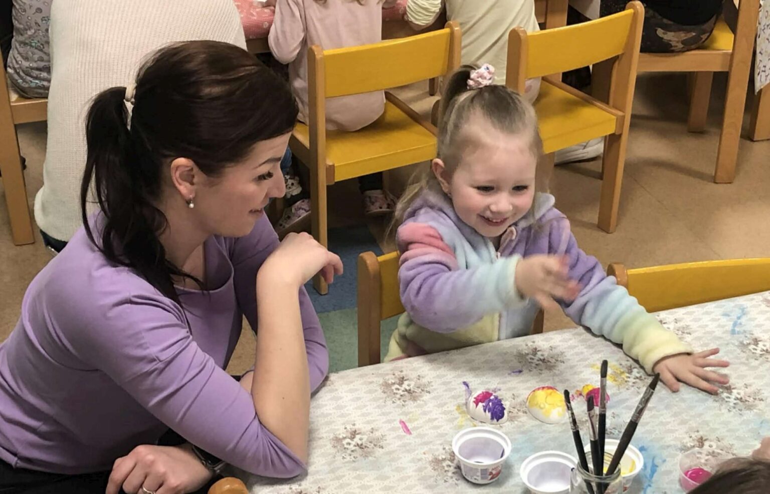 Před jarními svátky se naše školka proměnila v tvořivou dílničku. Pozvali jsme rodiče, prarodiče i sourozence a společně jsme vyráběli jarní dekorace. Nechyběl smích, dobrá nálada ani radost ze společně stráveného času Děti si domů odnesly nejen své výrobky, ale i hezké zážitky.