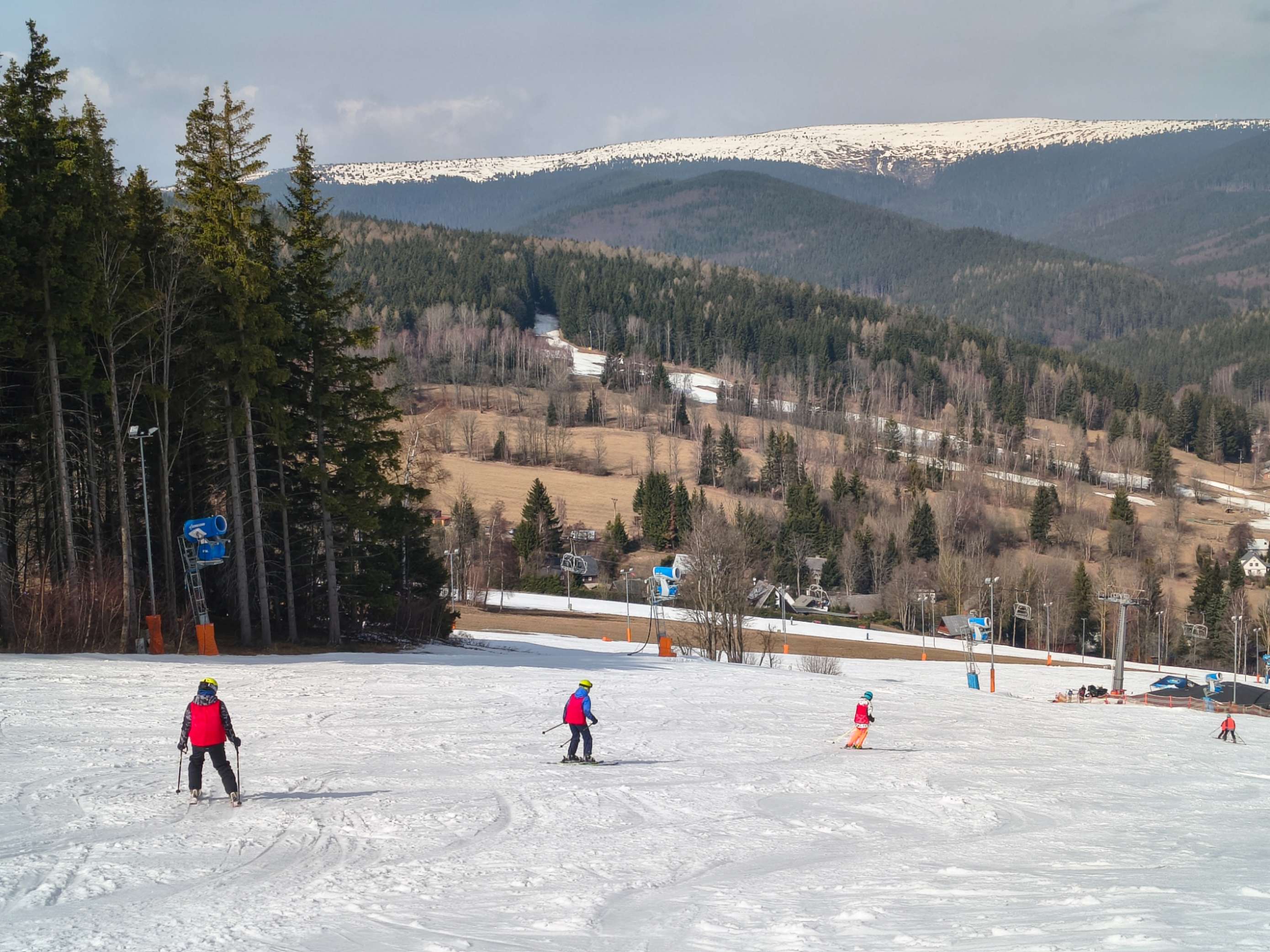 Komfortní zázemí s pohodlnými pokoji a výbornou stravou nám poskytla horská chata „Resort Na Horské“, která se nachází příjemných 300 metrů od lyžařského areálu. Pro snadný přesun jsme využívali úschovnu lyží a snowboardů přímo na svahu (hned vedle nástupní lanovky). Zásob sněhu na sjezdovkách bylo dostatek, a tak jsme si mohli dosyta užívat prosluněnou jarní lyžovačku. Především dopolední lyžování (snowboardování) mělo parametry alpských středisek – ježdění bez front na upraveném manšestru.
