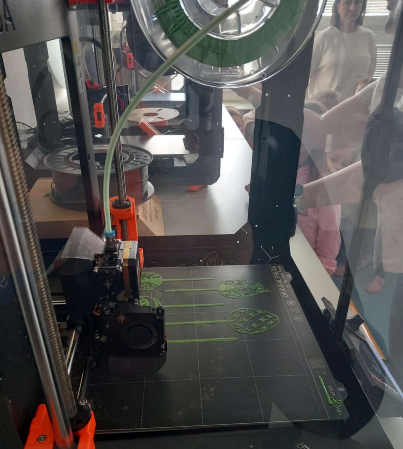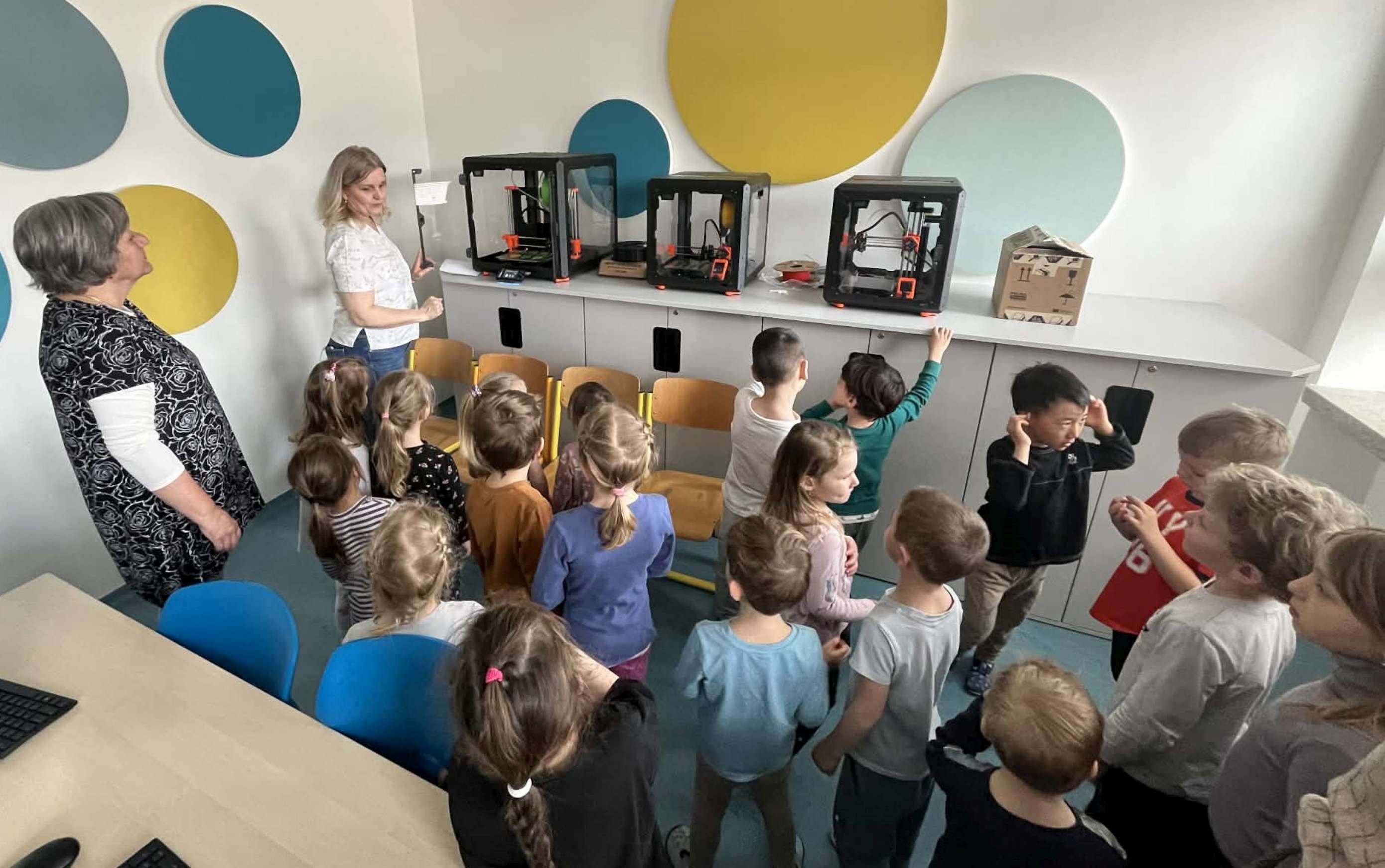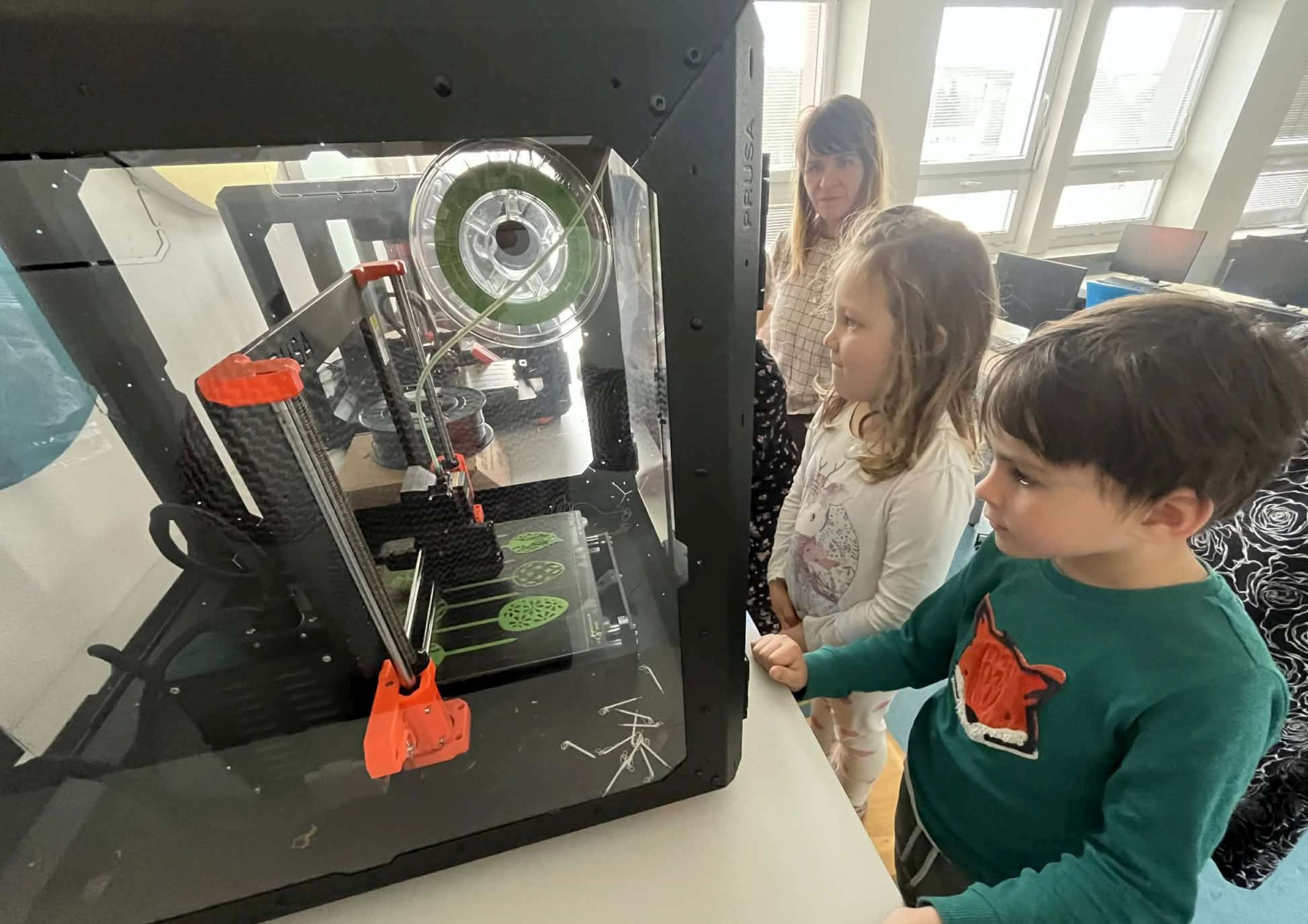 Přijali jsme pozvání naší základní školy a vydali se do počítačové učebny, kde jsme objevovali svět 3D tisku. Paní učitelka nám vysvětlila, jak celý proces funguje, a pak jsme mohli sledovat 3D tisk v praxi přímo při práci. Na památku si děti odnesly krásné tištěné velikonoční zajíčky.
