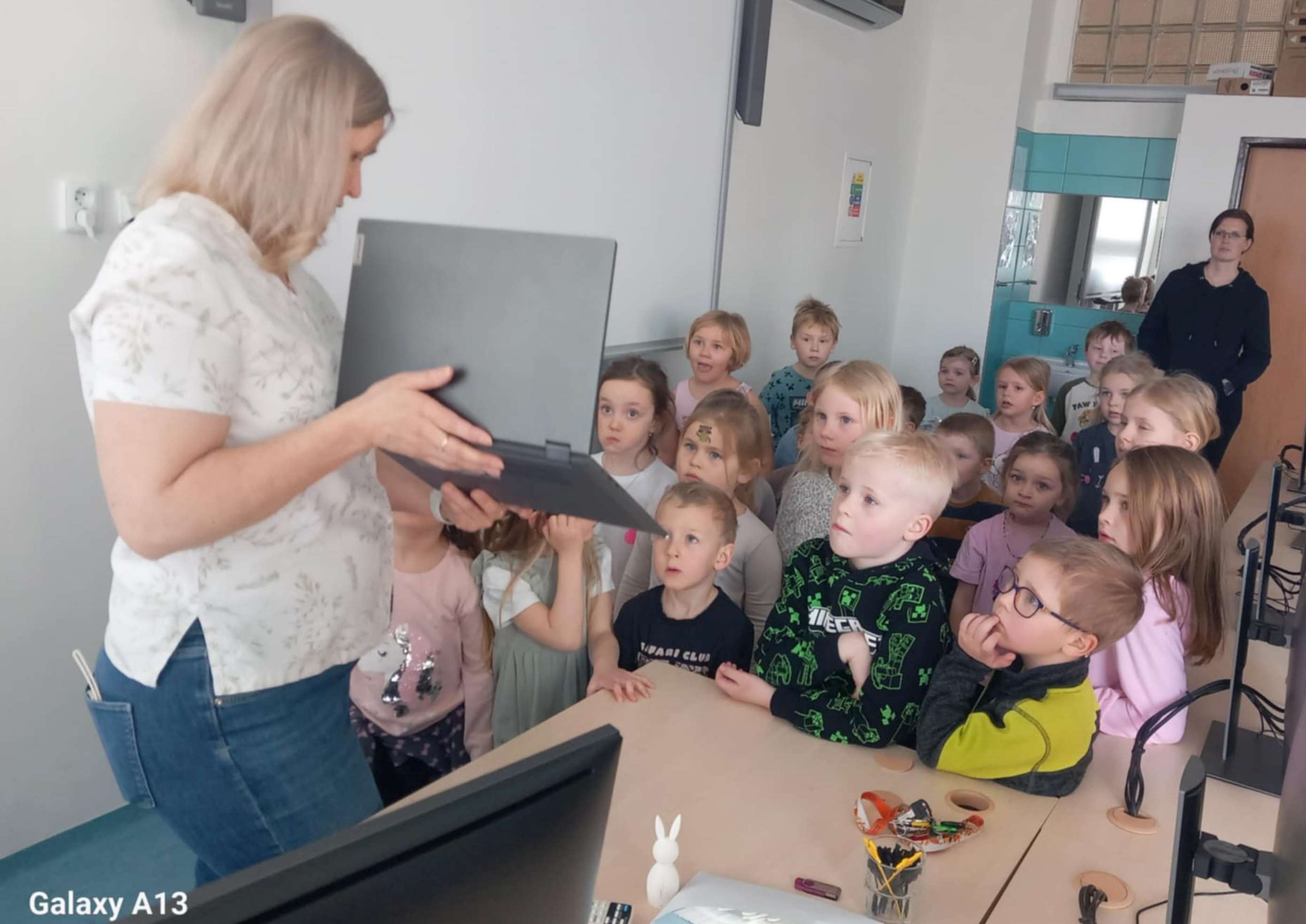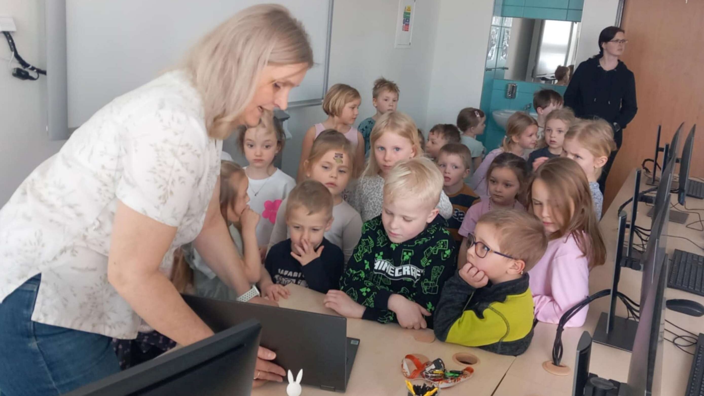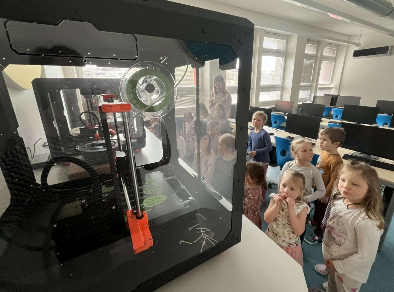 Přijali jsme pozvání naší základní školy a vydali se do počítačové učebny, kde jsme objevovali svět 3D tisku. Paní učitelka nám vysvětlila, jak celý proces funguje, a pak jsme mohli sledovat 3D tisk v praxi přímo při práci. Na památku si děti odnesly krásné tištěné velikonoční zajíčky.