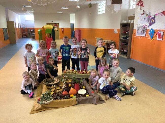 Děti měly úkol, přinést do školky podzimní plod. Některé jsme využili při výrobě podzimních housenek a ze zbylých plodů jsme naaranžovali podzimní výstavu.