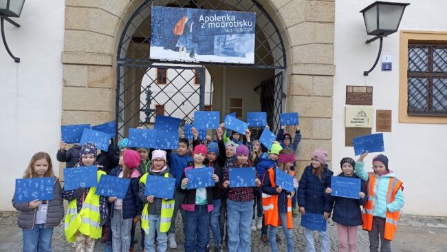 Blanenský zámek přilákal naši 2. A na výstavu modrotisku, který má v naší zemi dlouhou a jedinečnou tradici.