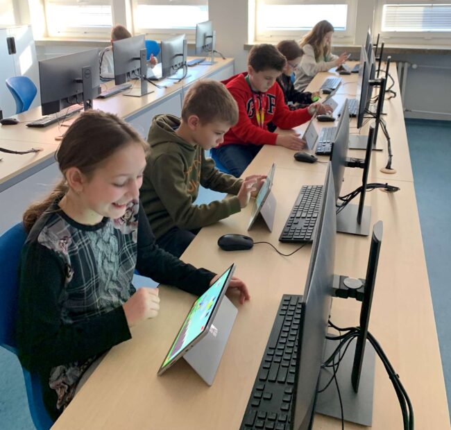 Moderní digitální technologie mají v naší škole své pevné místo. Soubor moderních zařízení nedávno rozšířilo dotykové zařízení Microsoft Surface, s nímž se jako první seznámili žáci pátých ročníků.