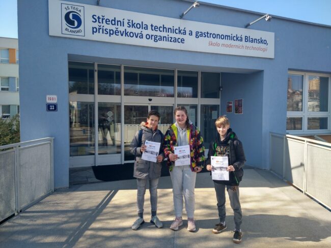 V rámci technicky zaměřených soutěží jsme se v úterý 22. března dostavili s vybranými žáky – jmenovitě s Karolínou Juračkovou, Jakubem Truhlářem a Stanislavem Vahalou – do prostor SŠ TEGA Blansko na již tradiční Technickou olympiádu pro žáky 6. a 7. ročníků.