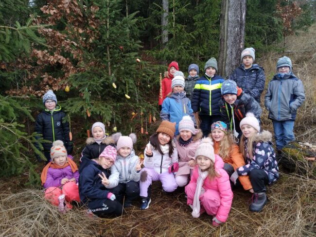 I letos se vydali žáci 2. C do lesa, aby přilepšili v zimě lesním zvířátkům.