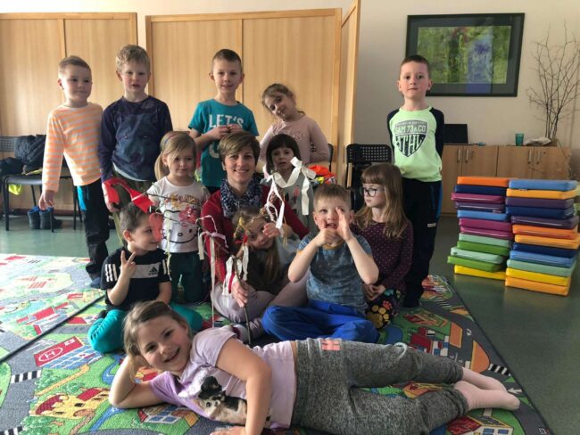 Také naše MŠ přivítala jaro zvykem „vynášení Morany“.