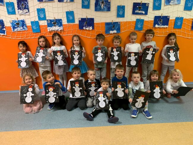 Děti si povídaly o tom, co vše je bílé. Motýlci vyráběli sněhuláčky a děti ze třídy Sluníček zkoušely stavby z kostek cukru, bruslily a zahrály si na pekaře.