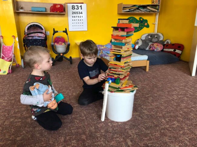 Hlavně kluci ze třídy Sluníček si teď moc rádi staví. Vyrábí různé stavby z kostek. Podívejte se, jak jim to jde 🙂