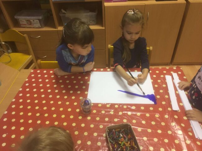 V rámci tématu Moje tělo a zdraví si děti mimo jiné vyzkoušely namalovat portrét kamaráda, zahrály si na zubaře a užily si pobyt venku na sněhu. 🙂