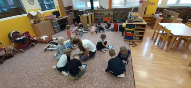 Děti si vyzkoušely práci s tablety, kde si zahrály hru pexeso.