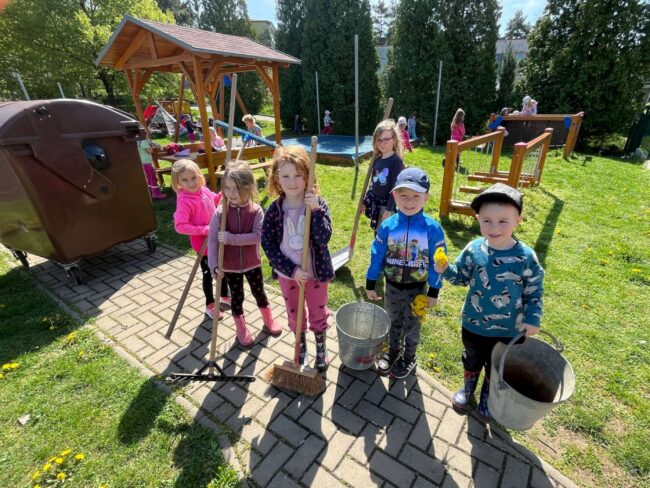 Den Země jsme ve školce oslavili velkým úklidem školní zahrady.