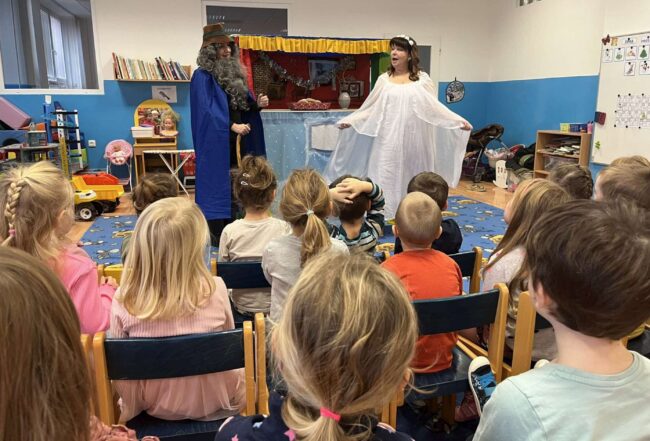 Opět nás navštívilo Divadlo ÚSMĚV, tentokrát s pohádkou Krakonošovy Vánoce. V pohádce jsme poznali, že důležitější, než velká hromada dárků, je mít okolo sebe u stromečku všechny, které máme rádi.