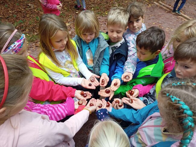 Máme za sebou druhý měsíc školního roku. Říjen nám dopřál opravdu hezké počasí, proto jsme tyto hezké dny využili především k pobytu na dětských hřištích a poznávacích vycházkách, kde jsme se seznamovali s proměnami přírody na podzim.